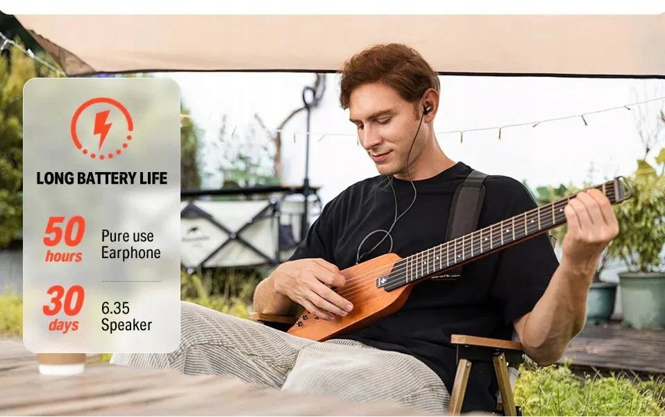 Ви музично схильні і хотіли б придбати новий музичний інструмент? Електроакустична гітара Donner Music може бути квитком. Він має довжину шкали 628 мм і нуль -ширину з шириною 43 мм. Електроакустична гітара Donner Music може похвалитися загальною 20 порогами, які швидко змушують усіх звикнути до інструменту. Захоплюючі тони виводяться 6 струнами, тоді як довге життя забезпечується їх металевою обробкою. Гітара має інтегрований перетворювач, побудований безпосередньо з заводу, тому не потрібно отримувати його окремо. Домовленість окремих частин робить електроакустичну гітару Donner Music придатною для правих гравців.