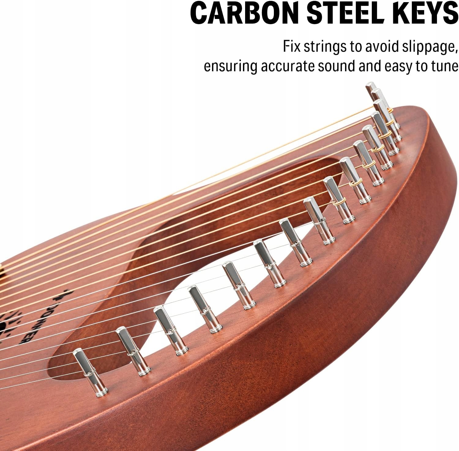 Тональність: Пентатонічний режим Кількість струн: 16 струн Матеріал звукової коробки: Тверде червоне дерево AAA Розміри: 38 x 26,5 x 3 см
