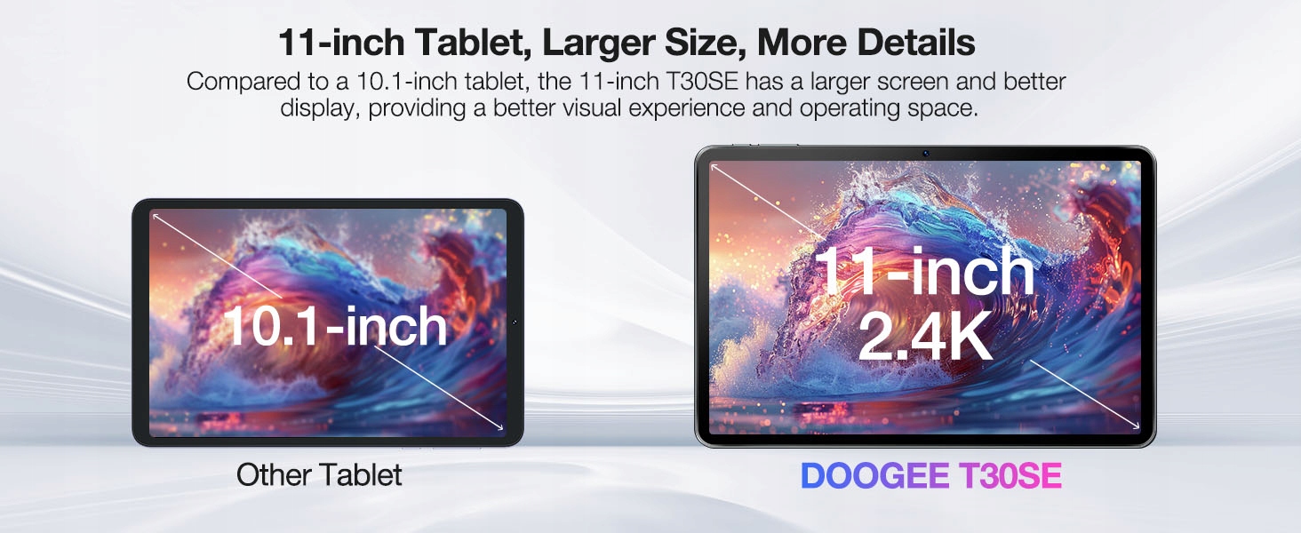 2,4k роздільна здатність робить весь мультимедійний вміст, відображений на T30SE, характеризується чудовим багатством та кольором кольорів, що дозволяє вам зануритися в будь-який час. 11-дюймовий Doogee Таблиця T30SE підтримує широку ложку L1 Ultra HD 1080p і сумісний з Amazon.com.