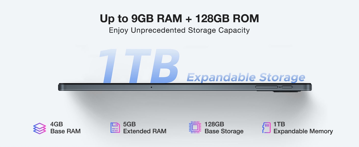 Внутрішня робоча пам'ять про Планшет - 4 Гб, і додавши 5 ГБ віртуальних меморіальних меморіалів, ви можете досягти 9 ГБ пам'яті. Розширена пам'ять працює через віртуальну трансформацію частини пам'яті планшета Flash в робочу пам'ять, тим самим зменшуючи тиск на реальну пам'ять, і тиммію за рахунок зменшення проблеми Акліканії фібриляцією. Для регулювання пам’яті планшета від 4 ГБ до 9 ГБ це слід робити в налаштуваннях. Якщо ви не знаєте, як це зробити, ви можете перевірити кроки в описі продукту або зв’язатися зі мною. /bit.ly/3yip7em