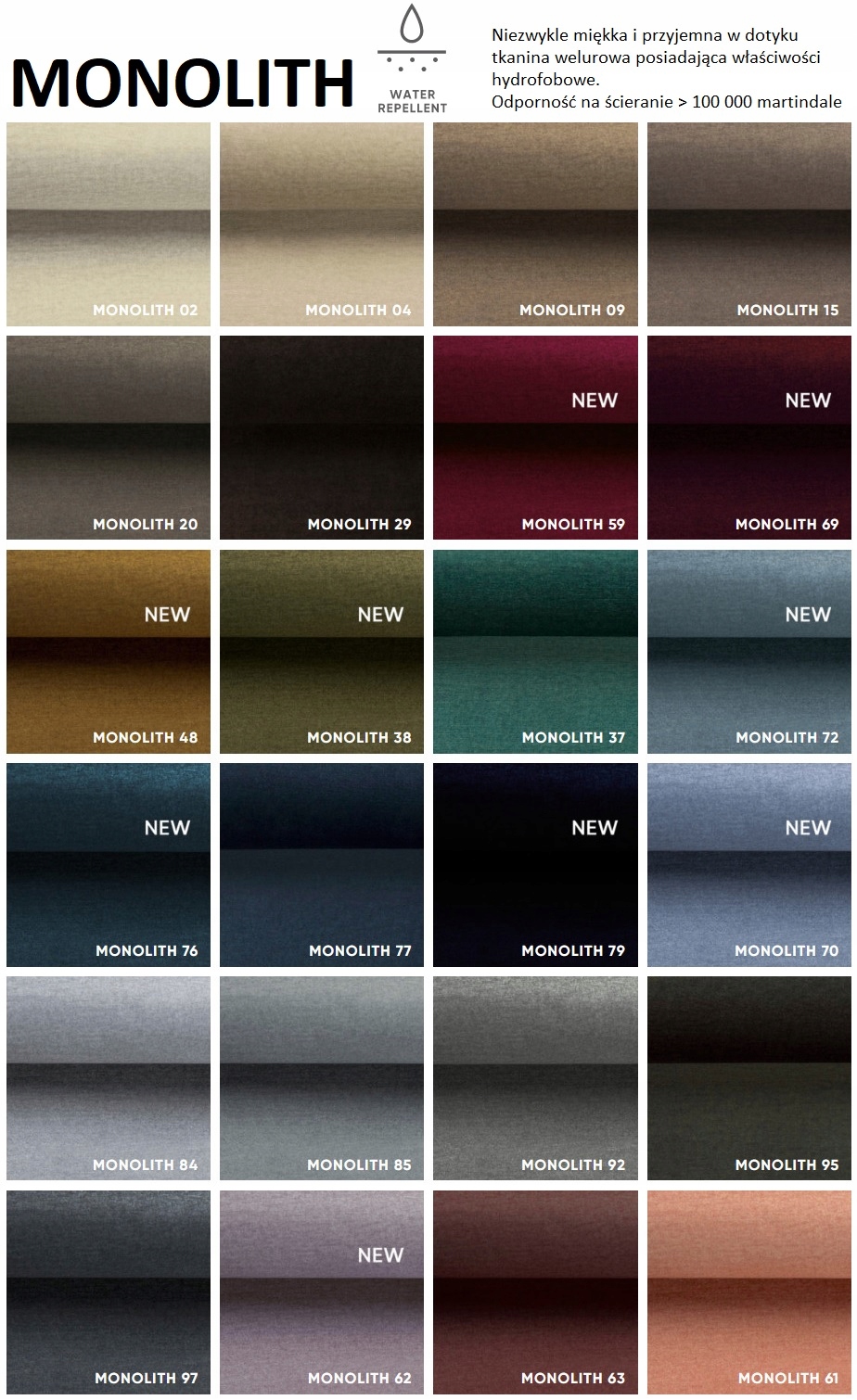 Тканина МОНОЛІТ міцна і довговічна, але при цьому м'яка і дуже приємна на дотик. Він доступний у наймоднішій збалансованій колірній лінії, яка була збагачена акцентами зеленого, темно-синього та пудрового рожевого.