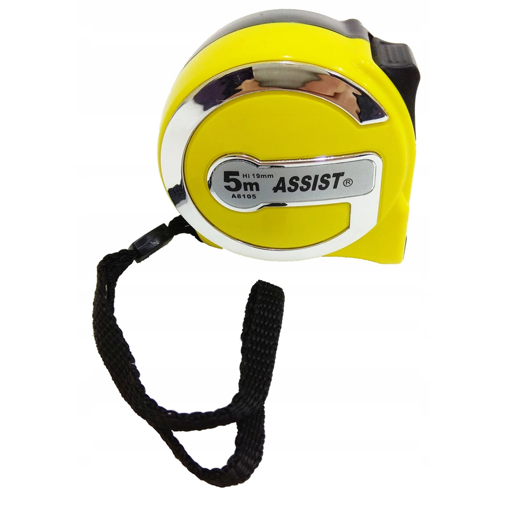 Допоміжна рулетка 5м х 19мм ЖОВТА з кліпсою