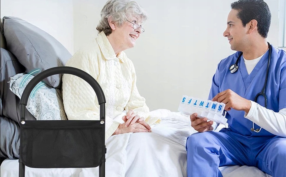 🛏 Бар'єр на ліжко з регулюванням висоти та сумкою для людей похилого віку