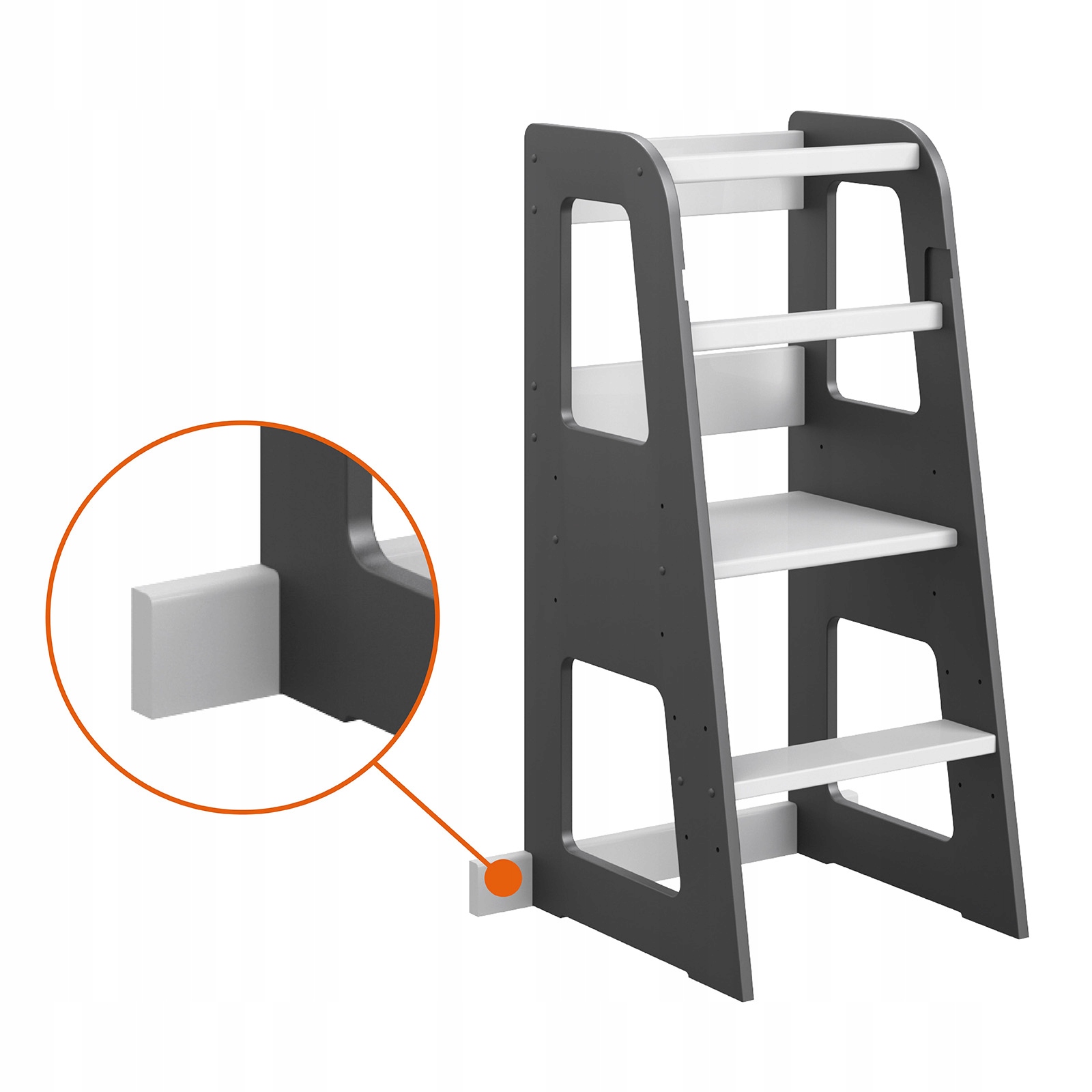 Конструкція кухонного помічника міцна та стабільна під час використання. Він оснащений додатковою запобіжною планкою, яка забезпечує безпечне використання маленькими дітьми. Штанга знімна, тому ви можете в будь-який момент витягнути її для старшої дитини, яка лазить самостійно.