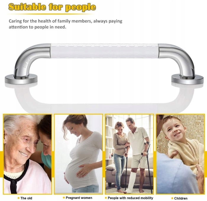 - Підходить для багатьох застосувань: безпечні ручки ідеально підходять для кріплення в сантехнічних установках, ваннах, душових кабінах, біля туалету, біля сходів або поруч до крісла, дизайн для установки на стіну займає мало місця на стіні, що економить місце. - Для наклеювання на всі гладкі поверхні.