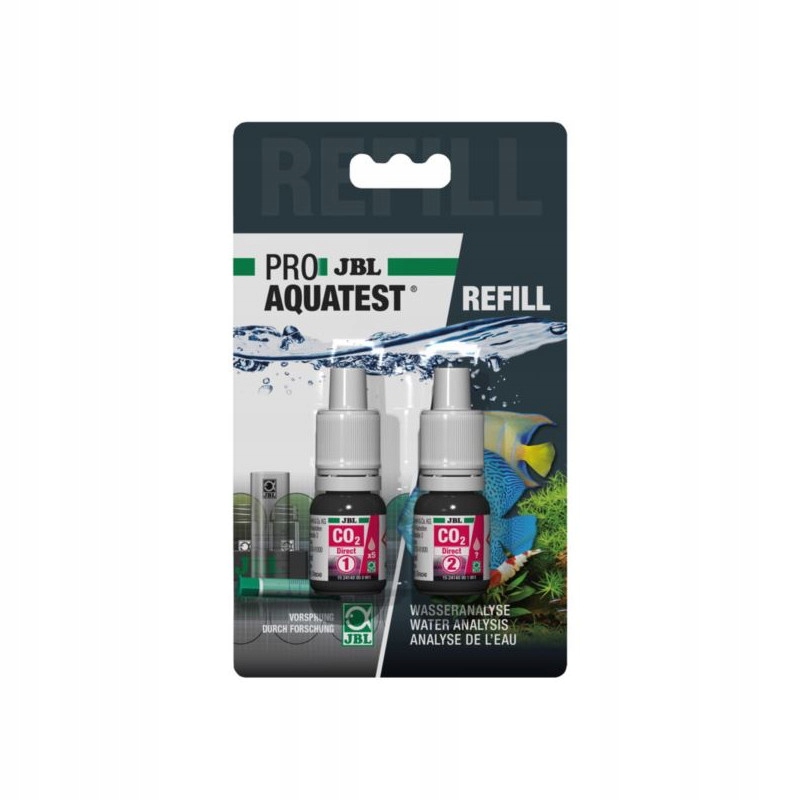 Доповнення JBL CO2 Direct ProAquatest - Вимірювання вмісту CO2, що доповнює базовий тест JBL CO2 Direct ProAquateSt у наборі 2 реагентів, що доповнюють базовий тест (реагент 1 та 2). Прямий набір випробувань JBL CO2 використовується для швидкого та ретельного вимірювання вмісту вуглекислого газу в акваріумній (солодкій) воді. Навіщо тестувати? Вуглекислий газ (СО2) є найважливішим поживним речовиною. У воді акваріума значення встановлюються в діапазоні: 2 та 4 мг/л, без удобрення вуглекислого газу. Ми рекомендуємо вміст CO2 від 15 до 30 мг/л, з оптимальним значенням 20 - 25 мг/л. Ця цінність не становить загрози для риби, при цьому доглядаючи за чудовим ростом рослин. Тому апарат повинен бути встановлений для запліднення з вуглекислим газом з часом, щоб досягти оптимального діапазону значення. Скільки СО2 слід додати для досягнення оптимальних значень, залежить від багатьох факторів. Окрім кількості СО2, споживаних рослинами, на споживання СО2 також впливає циркуляція води та інтенсивність освітлення (більше світла викликає швидший ріст рослин, що збільшує попит на СО2). Тому відповідну дозу слід визначати індивідуально для кожного акваріума. У той же час слід спостерігати апарат для запліднення CO2. Аваріуми з мізерною рослинністю або позбавлені її, наприклад, у випадку рибного землеробства з озера Малаві або Танганька, не потребують додаткового постачання CO2. Засіб у прісній воді: для низько вмісту вуглекислого газу (<15 мг/л): запліднення за допомогою біографії JBL Profloro (CO2 від природного виробництва мікро -аганізмом). Доповнення JBL CO2 DüngeAnlage (U401, U402, U403, M601, M602, M603, M1003) Прикладний пристрій для високого вмісту діоксиду вуглецю:> 30 мг/л). Потрібно щось взяти, якщо риба, очевидно, дихає швидше або все ще плаває на поверхні води. У цьому випадку акваріум повинен бути кисневий насос JBL. Зменшити додавання CO2. При гострих отруєннях з вуглекислим газом слід негайно здійснити 50 %обміну водою. Як використовувати випробування на прямі випробування CO2 у прісній воді: 1. Промийте обидві трубки з акваріумною водою багато разів. 2. Промийте шприц з водою, призначеною для випробувань. 3. Наповніть обидві трубки 20 мл акваріумної води, призначеної для випробування шприцом. Поверніть Важливість того, що вода, призначена для випробування, не містить повітряних бульбашок. 4. Помістіть обидві трубки на полях прикріпленої кольорової картки. 5а. Додайте 5 крапель реагенту 1 до трубки в біле поле і злегка струсіть. 5b. Потім додайте в трубку після краплі реагенту 2, злегка струсіть після додавання кожної краплі. Порахуйте кожну краплю, поки не з’явиться рожевий колір, що відповідає кольоровому тесту у другому полі. Щоб порівняти кольори, подивіться на трубки зверху. 5c. Додайте краплі реагенту 2, краплі на краплі, поки колір не стабілізується принаймні 60 сек. 6. Кожна крапля відповідає 2 мг/л вуглекислого газу у воді. Кількість крапель x 2 відображає вміст вуглекислого газу в мг/л. Оскільки інші кислоти в акваріумній воді також впливають на вимірювання, сліпого значення слід відняти від результату вимірювання. Для визначення сліпого значення візьміть зразок 100 мл акваріумної води, яку слід кисгенувати протягом 15 хвилин, використовуючи мембранний мембранний насос мембранної мембрани JBL з каменем аерації. Педаль