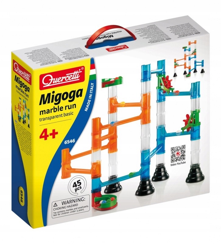 Цей набір складається з 45 гнучких і нерозривних прозорих деталей і пластикових кульок діаметром 4 мм. Діти можуть копіювати моделі, намальовані на упаковці, або експериментувати та будувати власні конструкції. Гірки, містки, колони та турнікети можна комбінувати різними способами.