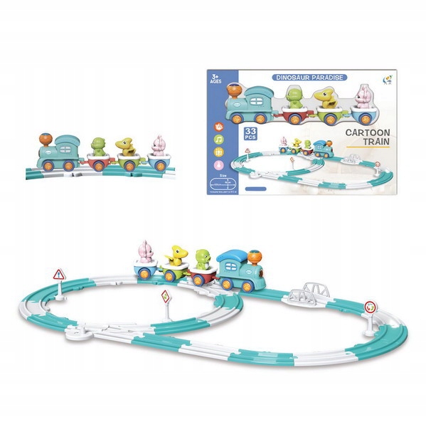 - Tor Wesoły "Dinuś Train 33 elements" – це іграшковий набір треків, який, ймовірно, має мотив динозавра, що робить його привабливим для дітей, особливо тих, хто любить динозаврів. Цей набір може стати чудовою розвагою для наймолодших, поєднуючи в собі розваги в поїзді з елементами пригод у доісторичному світі. Що може містити набір «Tor Wesoły Kolejka Dinuś 33 pcs»? Залізничні колії – набір складається з елементів колії, які можна вільно комбінувати для створення різних маршрутів для поїзда. Поїзд – локомотив із вагонами, які рухаються рейками, можливо, з елементами, пов’язаними з темою динозаврів. Елементи тематики динозаврів – фігурки динозаврів, дерева, каміння та інші декорації, які створюють атмосферу доісторичного світу. Інтерактивні елементи – Мости, тунелі, виїзди, по яких може їхати поїзд, що додає динаміки грі. 33 елементи – весь набір складається з 33 елементів, які можна комбінувати для створення різних комбінацій доріжок і пейзажів. Чому це може сподобатися дітям? Динозаври та потяги - поєднання двох улюблених дітьми мотивів: динозаврів і потягів створює цікаву та творчу розвагу. Складання доріжок – можливість створювати різні маршрути розвиває уяву та ручні навички. Інтерактивність – рух потяга рейками, особливо серед динозаврів, це захоплююча пригода.