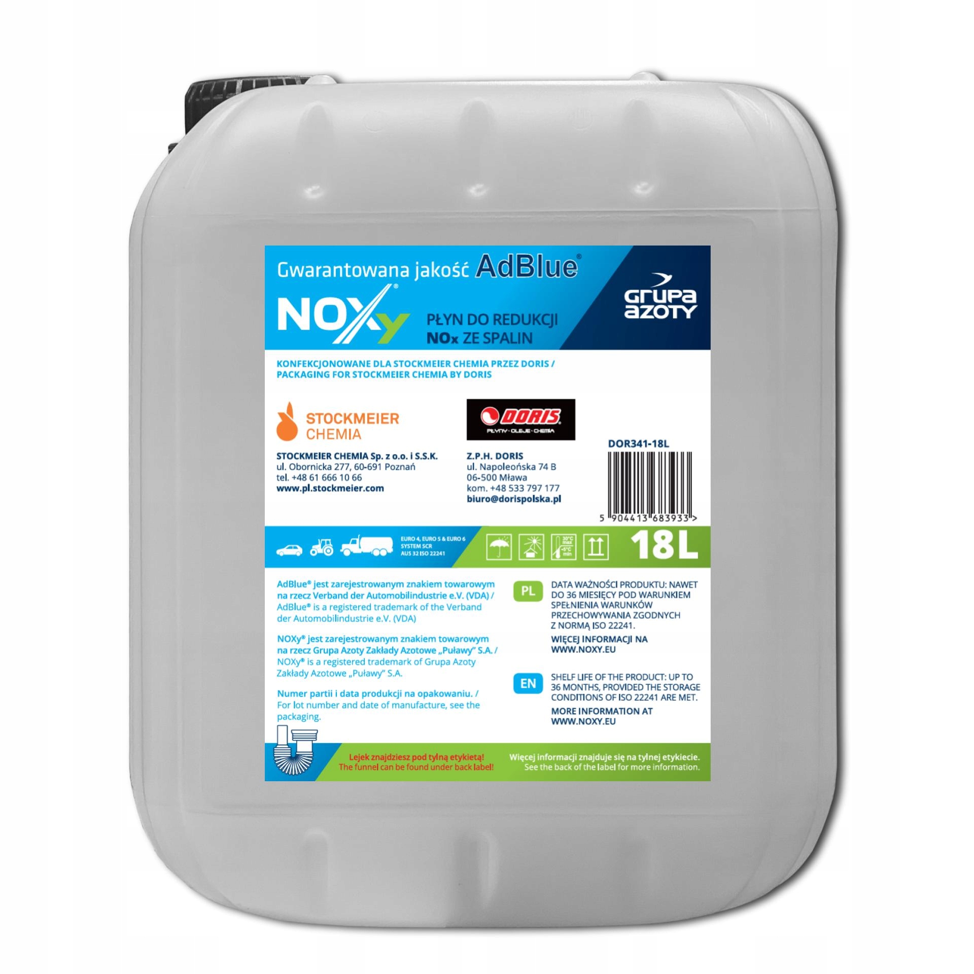 - Найвища якість відповідно до стандартів - наш AdBlue® виробляється на сучасному заводі зі 100% чистотою, Надійні джерела - NOXy® є авторизованим рішенням Grupa Azoty, що надає продукти від найкращих дистриб'юторів Zakłady Azotowe. Підтверджено тестами - тести в акредитованій лабораторії підтверджують ефективність NOXy® AdBlue® у зниженні викидів шкідливих речовин.