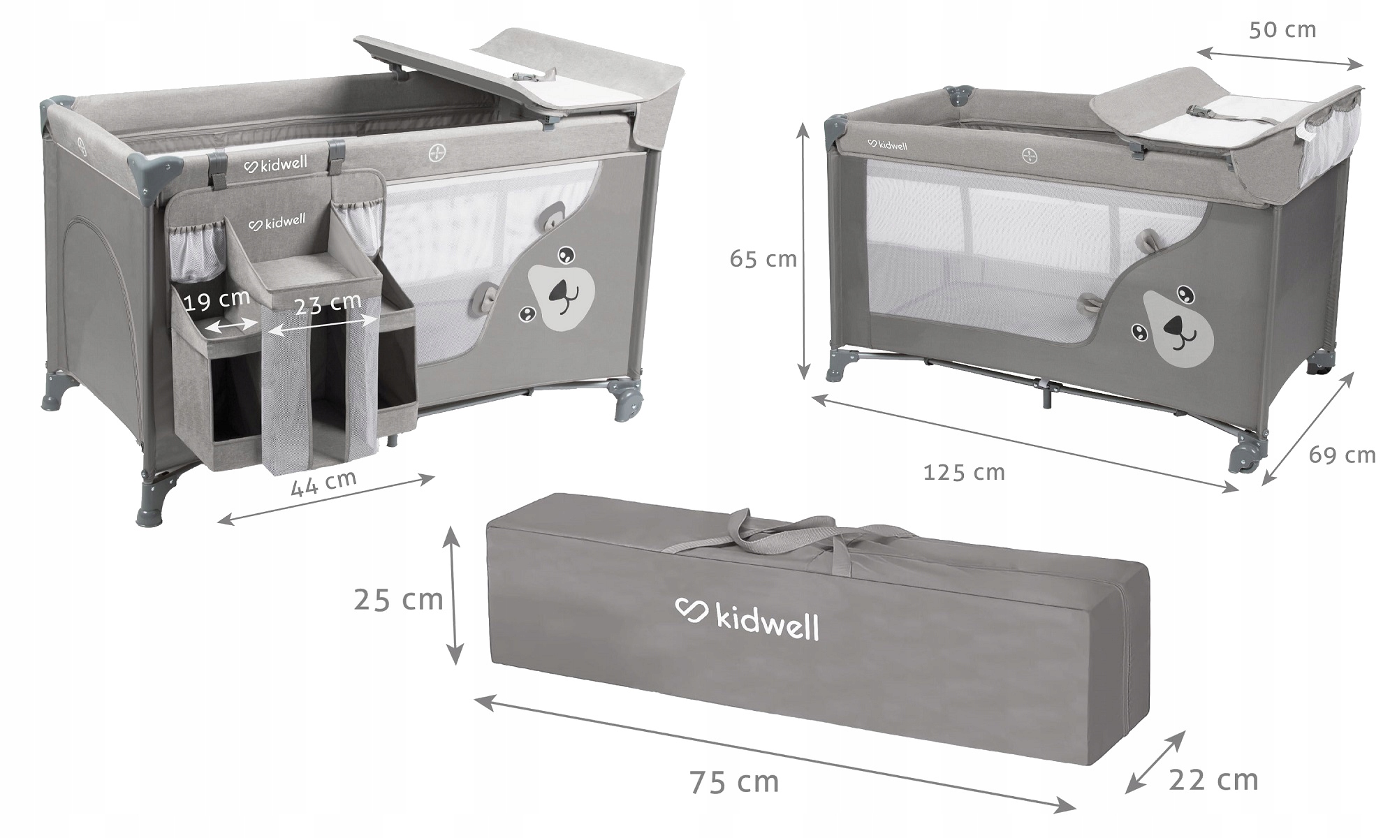 Kidwell Blissy 3-в-1 Дорожнє ліжечко з аксесуарами - ідеальне рішення для батьків, які цінують функціональність і комфорт. Blissy забезпечить комфорт і вам, і вашому малюку під час сну, ігор і щоденної гігієни. Ліжечко Blissy підходить для дітей від 1 дня до приблизно 3 років. Матеріали, які використовуються у виробництві, безпечні для дітей. Ліжко додатково оснащене захистом від розкладання LockGuard. Продукт відповідає суворим стандартам безпеки EN 716 і EN 12221.