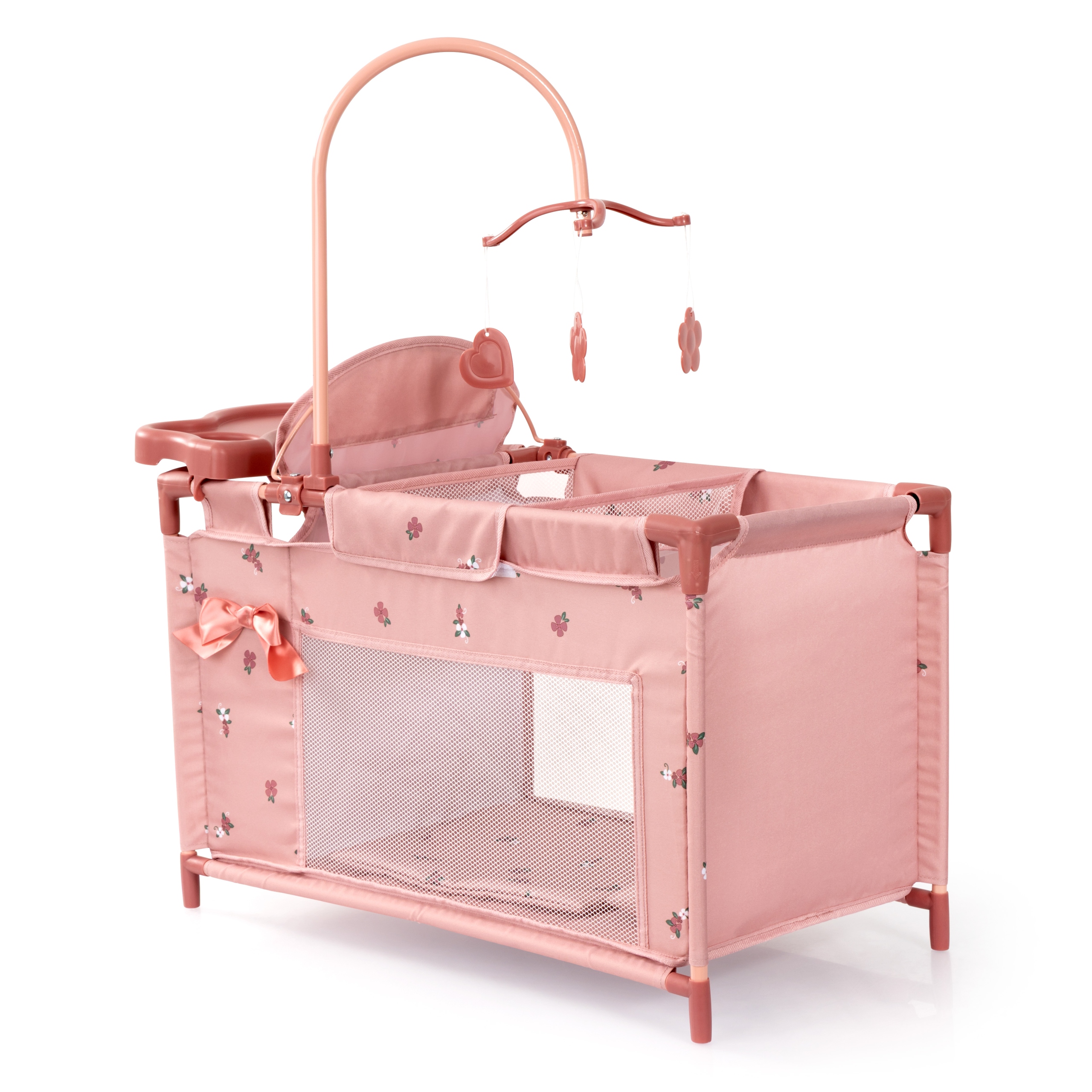 Багатофункціональне професійне лялькове ліжко пропонує незліченні можливості для ігор. У вбудованому дитячому стільчику лялькам зручно їсти завдяки підносу для їжі. Зберігання професійних аксесуарів Професійне ліжко має відділення, яке можна легко закривати та відкривати завдяки застібці-липучці. За сидінням також є місце для зміни ляльки. У набір входить ковдра і подушка, які дарують ляльці комфортний і комфортний сон.
