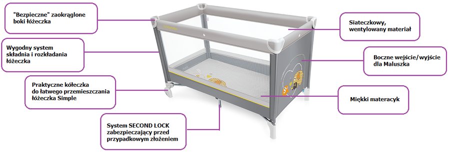 * Simple — це практичне дитяче ліжечко зі зручною та простою системою складання та розкладання.