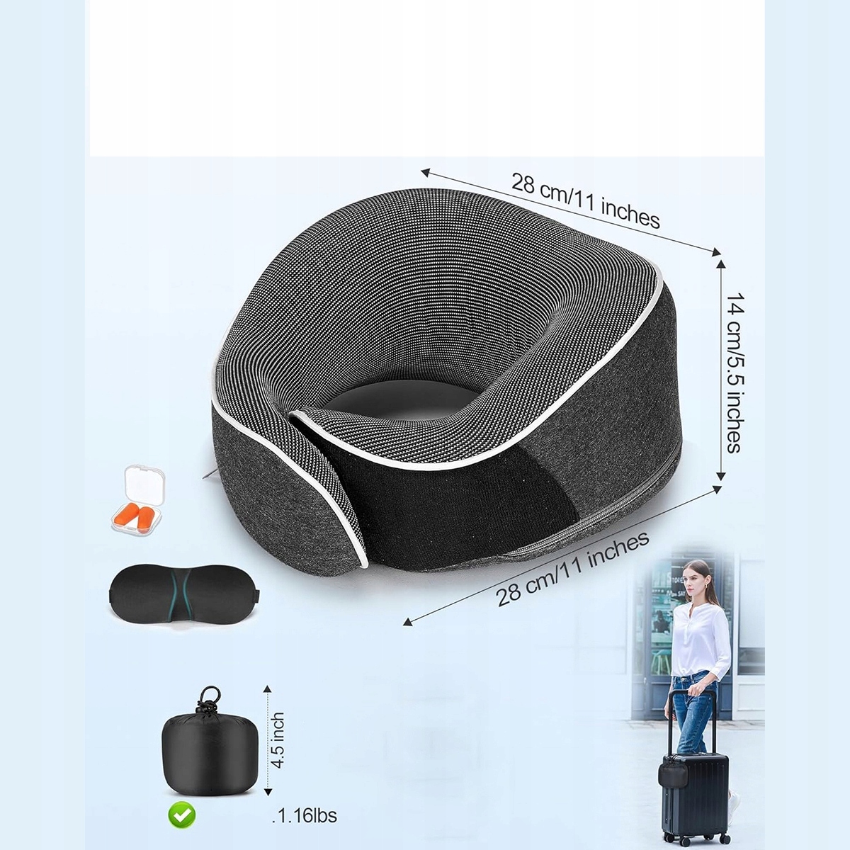 НЕОБХІДНІ АКСЕСУАРИ ДЛЯ ПОДОРОЖІВ: після тривалого збирання подушки для подорожей просто розгорніть її, дайте їй висохнути на повітрі та обережно помасажуйте піну з пам’яттю, щоб відновити її форму. У комплект входять беруші та маска для очей.