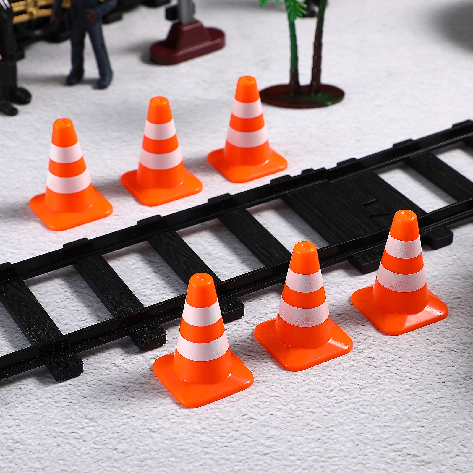 Набір дорожніх конусів виготовлено з АБС-пластику, який є безпечним і надійним. Творчі іграшки для дітей, щоб грати та розвивати практичні навички та уяву. Яскраві кольори та реалістичний вигляд дорожніх конусів роблять їх легкими для запам’ятовування дітьми та справляють на них враження. Як навчальний та розвиваючий подарунок. Його також можна використовувати як модель сцени для демонстрації руху. .