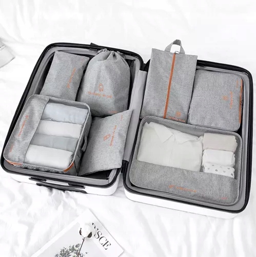 - ВЕЛИКИЙ НАБІР - набір складається з 7 сумок, які допоможуть вам підтримувати порядок у вашій валізі та готельному номері. Шість органайзеріврізного розміру, місткості та призначення полегшать Ваш відпочинок. Організатори дозволять відсортувати та упакувати білизну, взуття, косметику або кабелі та зарядні пристрої окремо. Завдяки їм ви можете упакувати додаткову пару взуття в дорожню сумку і не забруднити ними валізу чи інший одяг!