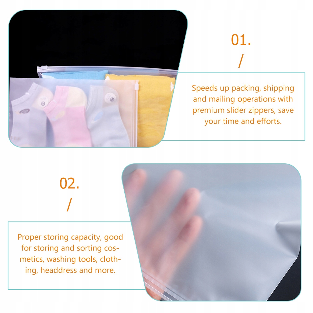 Виготовлені з поліетиленового матеріалу, вони придатні для багаторазового використання та довговічні, їх легко заклеїти та повторно запечатати, що забезпечує вам зручність.