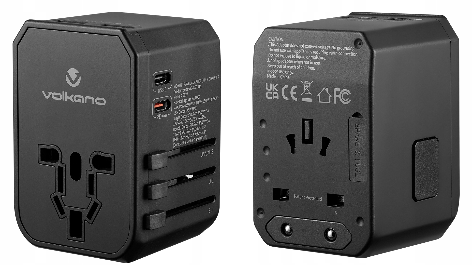 ДОРОЖНИЙ АДАПТЕР УНІВЕРСАЛЬНИЙ АДАПТЕР США Великобританія 2xUSB-C 45W PD SAFE