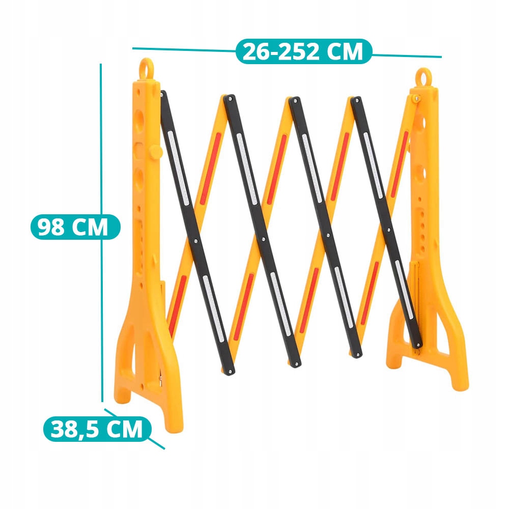 Складний дорожній шлагбаум — це функціональне та мобільне рішення для швидкого укріплення простору. Завдяки структурі, що нагадує гармошку, його легко розгортати та так само швидко складати, що значно полегшує транспортування та зберігання. Оснащений світловідбивачами, він забезпечує безпеку учасників дорожнього руху, наприклад, від ями в асфальті.