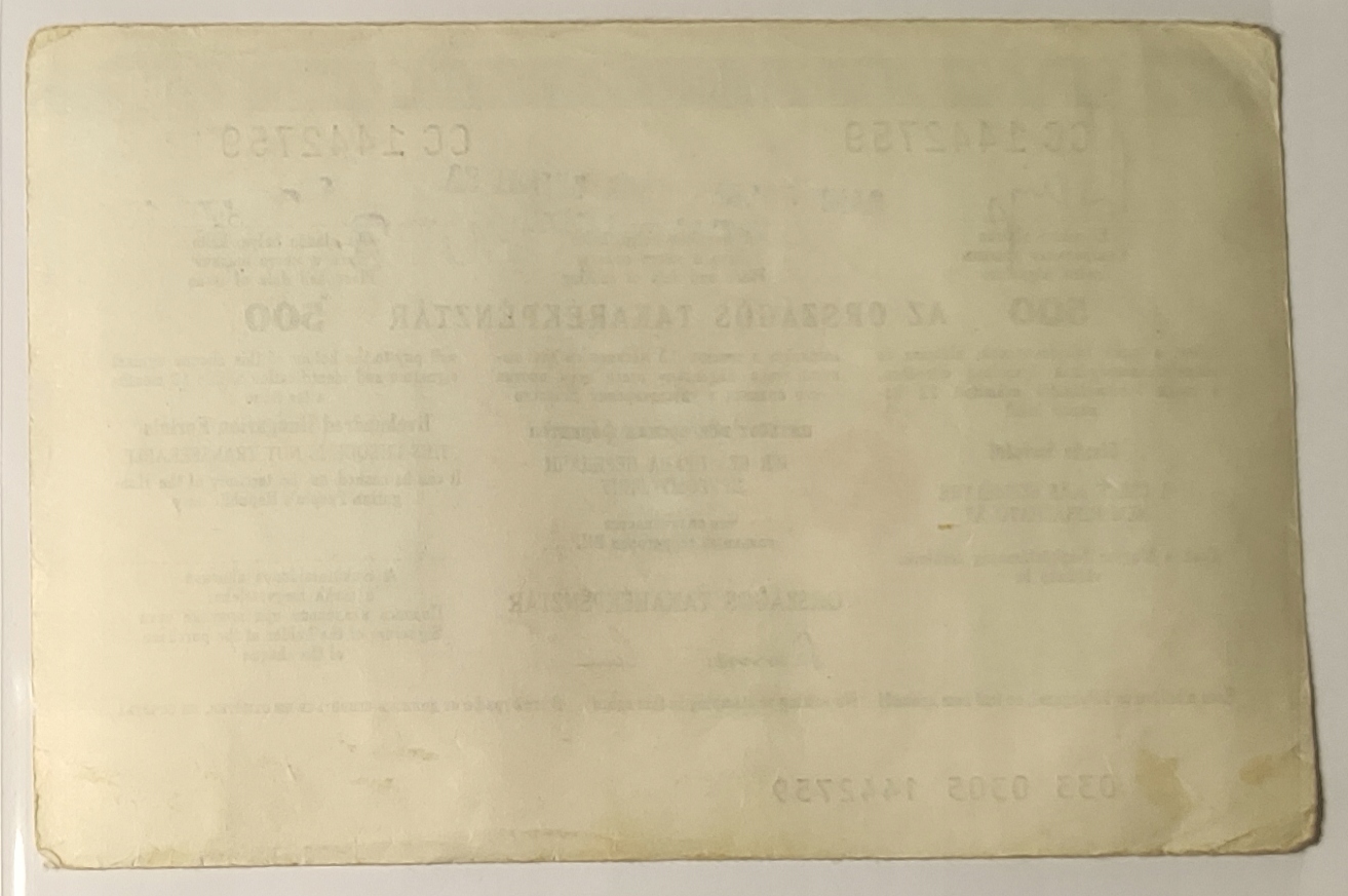 Дорожній чек PRL на 500 угорських форинтів, форинт 1981 року, серія CC