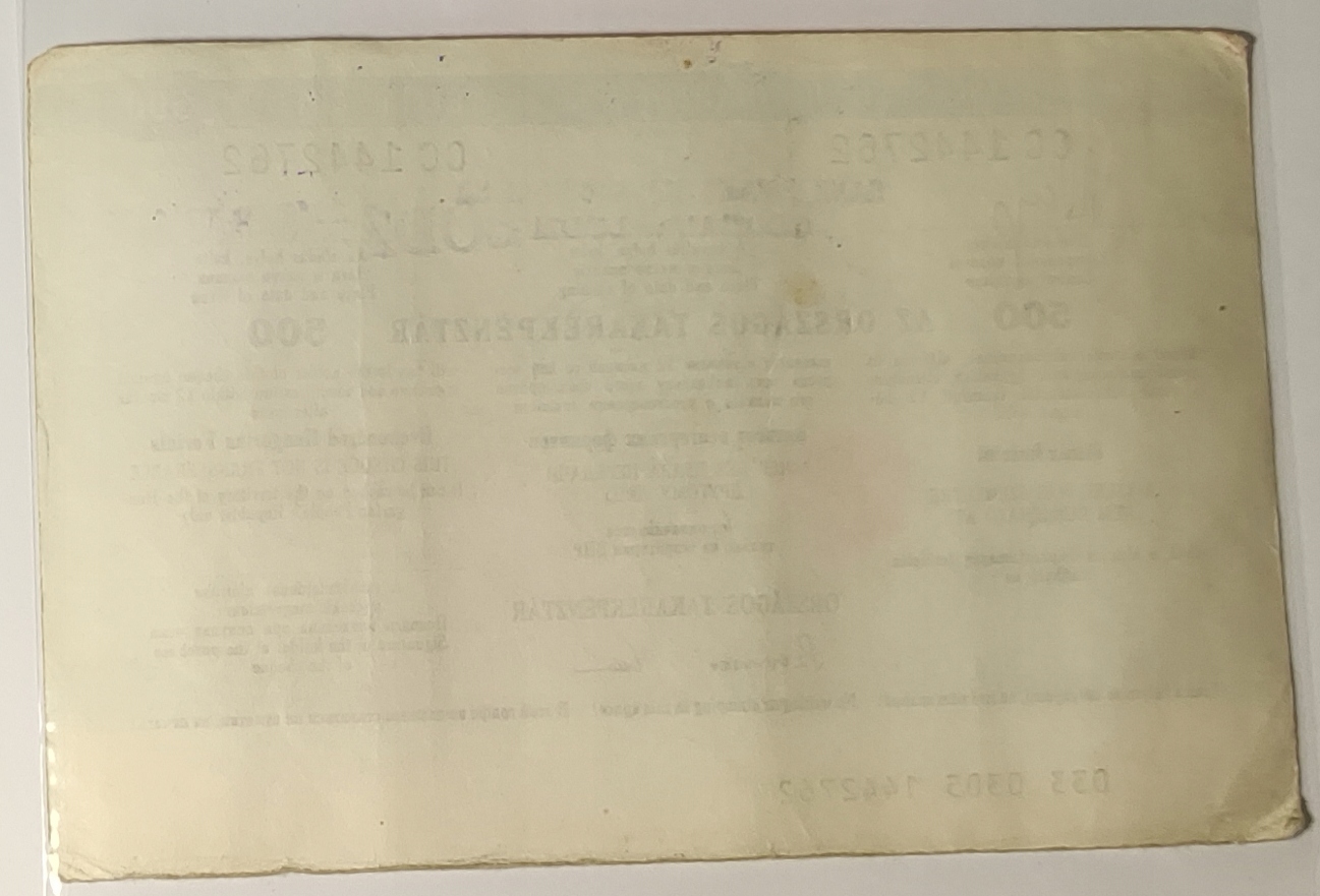 Дорожній чек PRL на 500 угорських форинтів, форинт 1981 року, серія CC