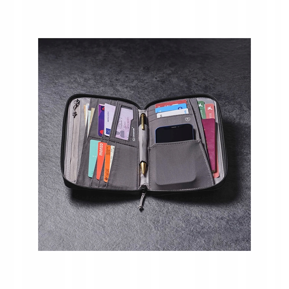 - Легкий і компактний – незважаючи на вражаючу місткість, гаманець важить лише 180 г і поміститься в будь-якій дорожній сумці