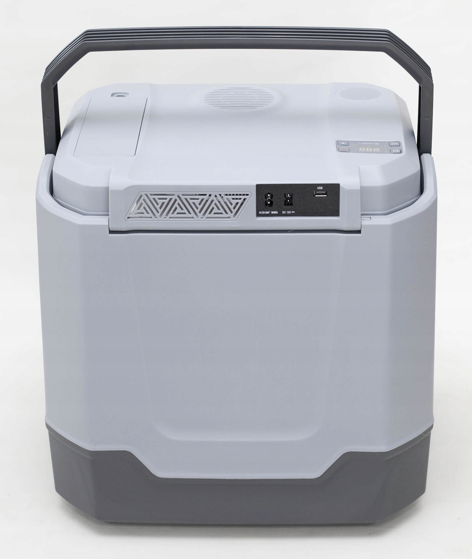 На задній частині холодильника є роз’єми для кабелі живлення 230В і 12В, що входять до комплекту, і USB-роз’єм для зарядки мобільних пристроїв