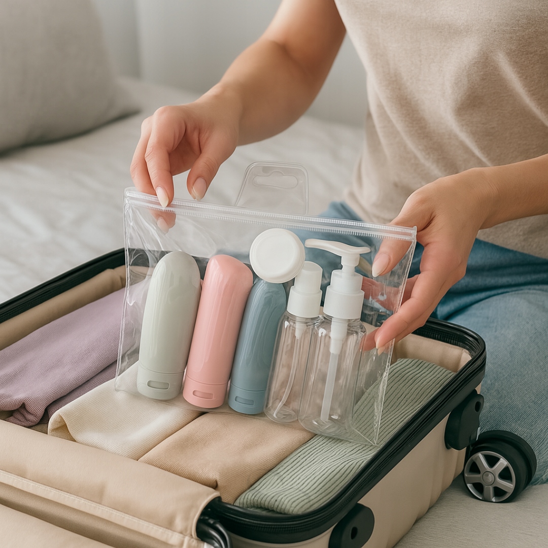 Набір дорожніх контейнерів для косметики для літака, 11 штук + косметичка