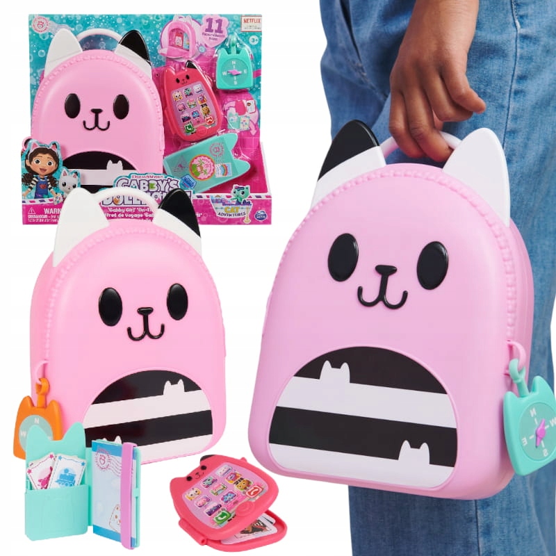 Набір містить усе необхідне для пригодницької подорожі у світ мрій — від іграшковий мобільний телефон, який у складеному стані ідеально зберігає ключ-картку кота, значок Gabi ID і підвіску з компасом , дорожній гаманець з місцем для іграшкового паспорта та проїзних квитків.