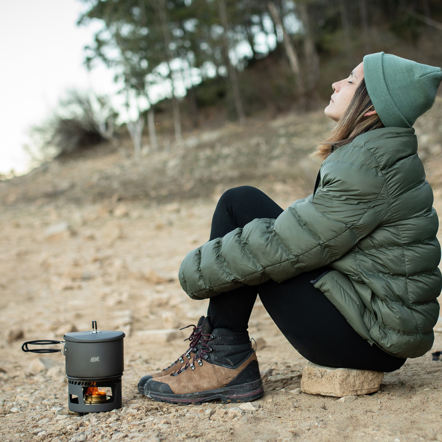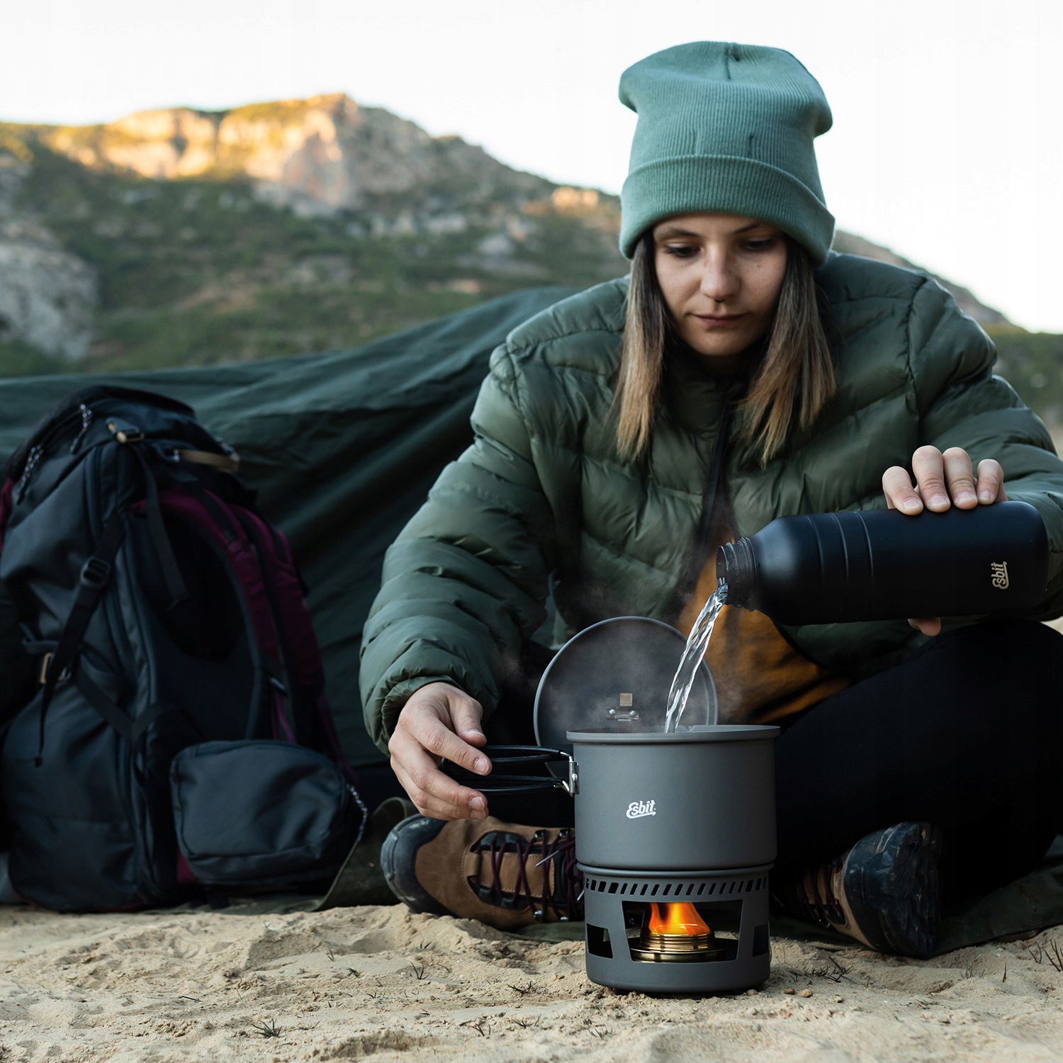 Набір для приготування їжі на твердому паливі Esbit 1500 — це легкий предмет, який повинен мати кожен мандрівник. Ви знайдете містку каструлю з кришкою, підставкою та пальником, присвячену алкоголю. Майже кожен елемент, що входить до набору вищезгаданої кемпінгової плити Esbit Solid Fuel Cookset 1500, виготовлено з анодованого алюмінію, який є дуже міцним і має відносно невелику вагу. У свою чергу, каструля і кришка мають інтегровані ручки з нержавіючої сталі, покриті силіконовим покриттям, що забезпечує надійне захоплення.