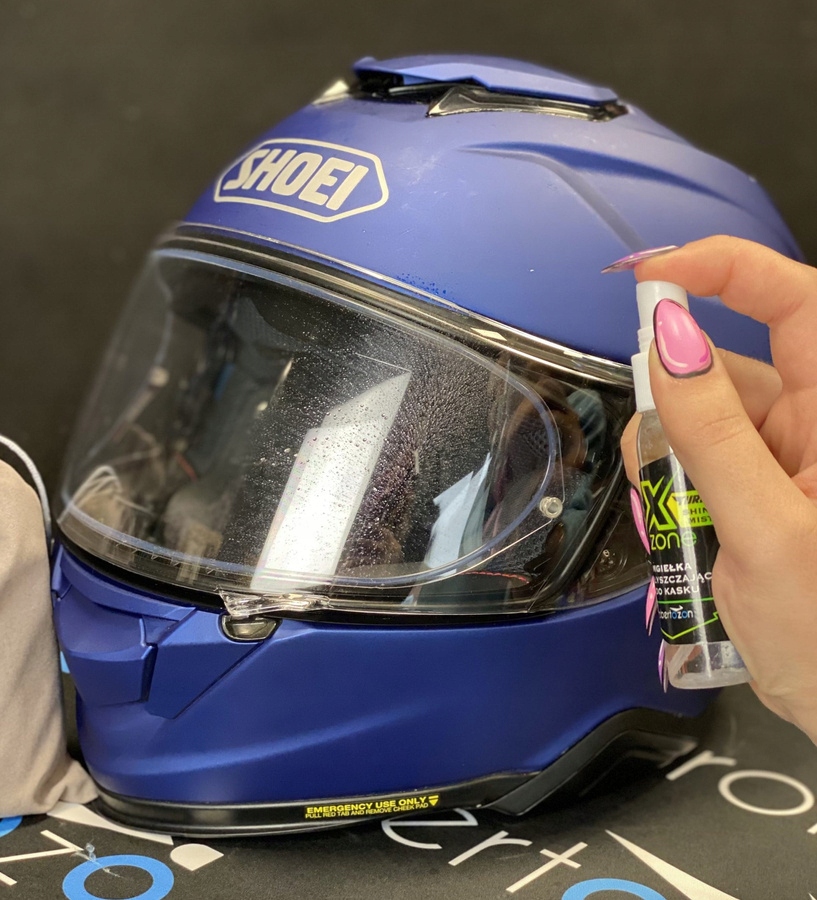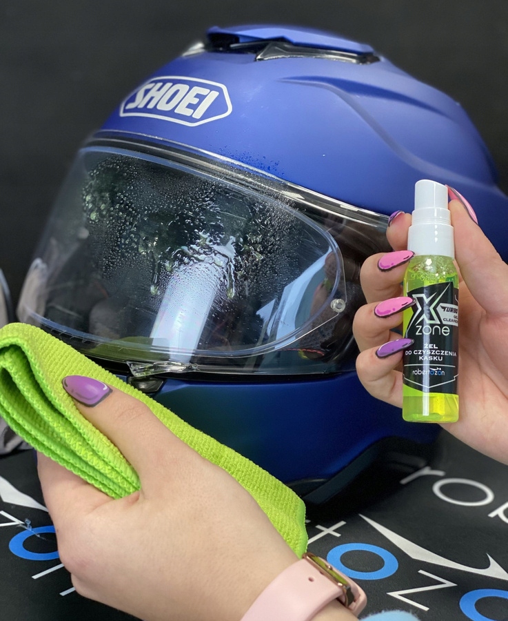 - Використовуйте аплікатор, щоб рівномірно нанести спрей на забруднену поверхню шолома.
