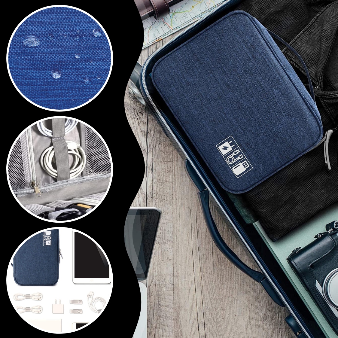 Органайзер для кабелю та зарядного пристрою є практичним рішенням для зберігання та транспортування електронних аксесуарів під час подорожей.
