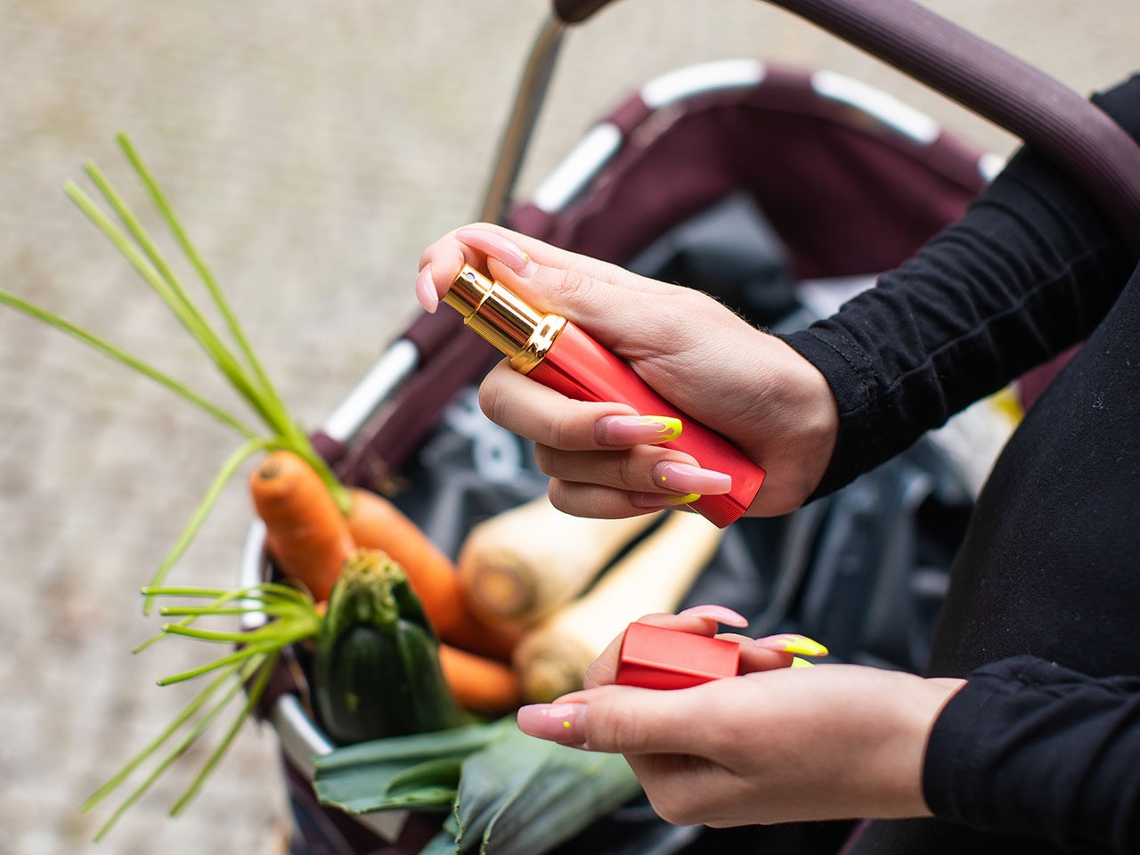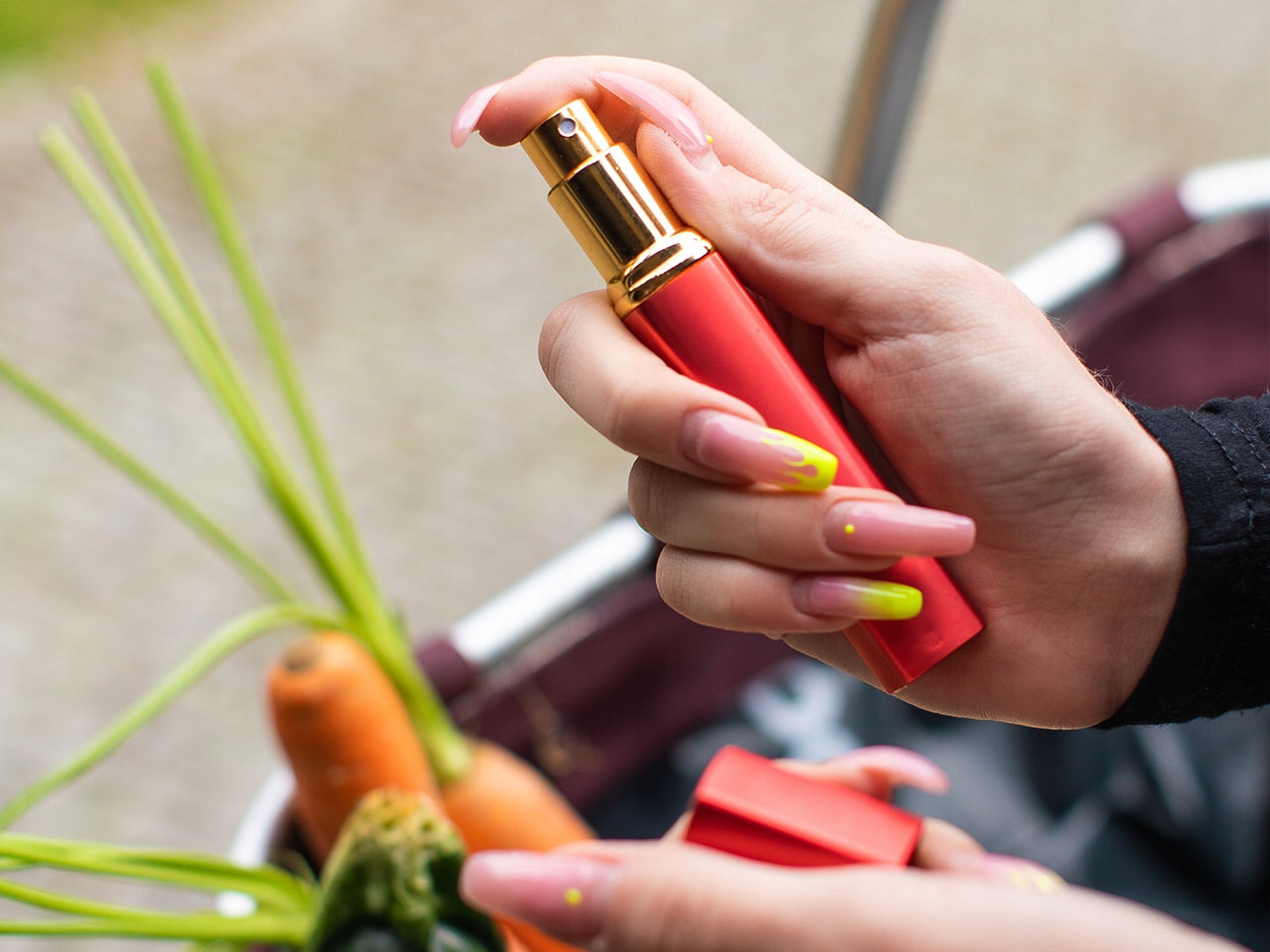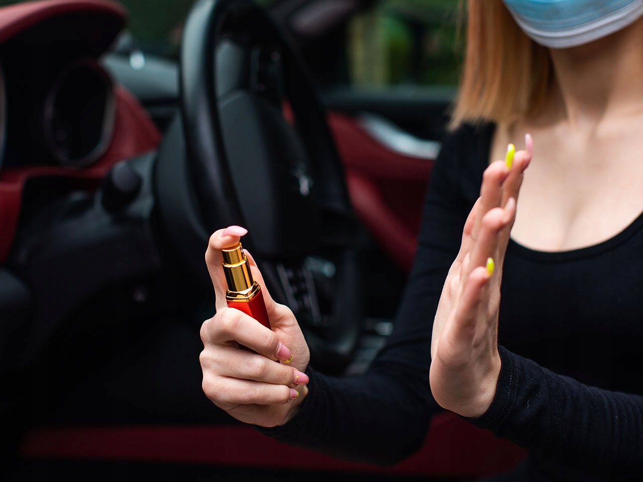 ДОРОЖНИЙ РОЗПИЛЬЮВАЧ ПАРФУМ - ДЕЗІНФЕКЦІЙНИЙ ЗАСІБ - ЧЕРВОНИЙ ГОФРИРОВАНИЙ - 12 МЛ