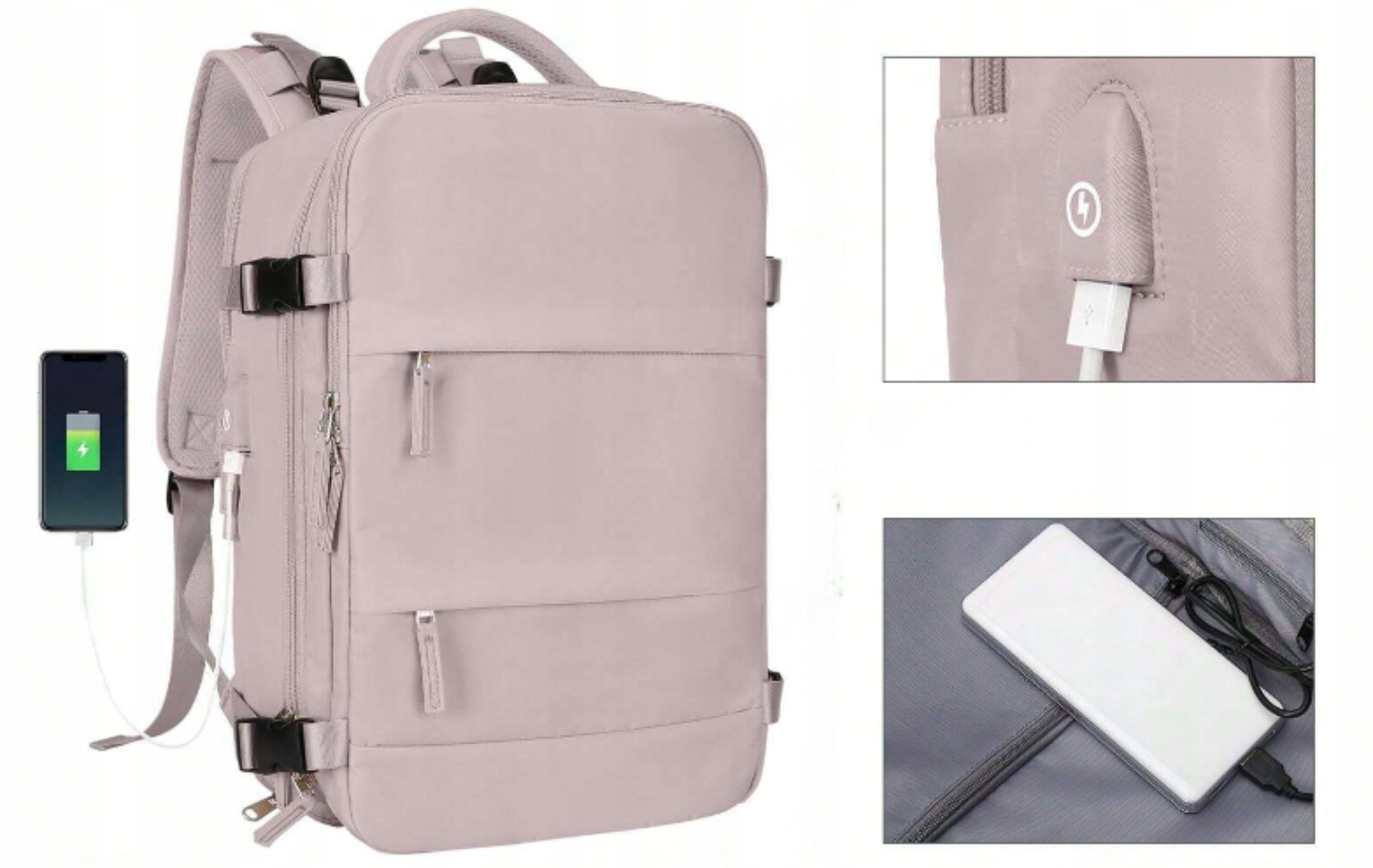Зручний зовнішній кабельний вхід (USB) і внутрішній кабель для підключення Power Bank дозволяє легко заряджати мобільні пристрої, підключивши його до Power Bank (не входить в рюкзак). Тепер ви можете без проблем зарядити свій телефон або планшет по дорозі в аеропорт!