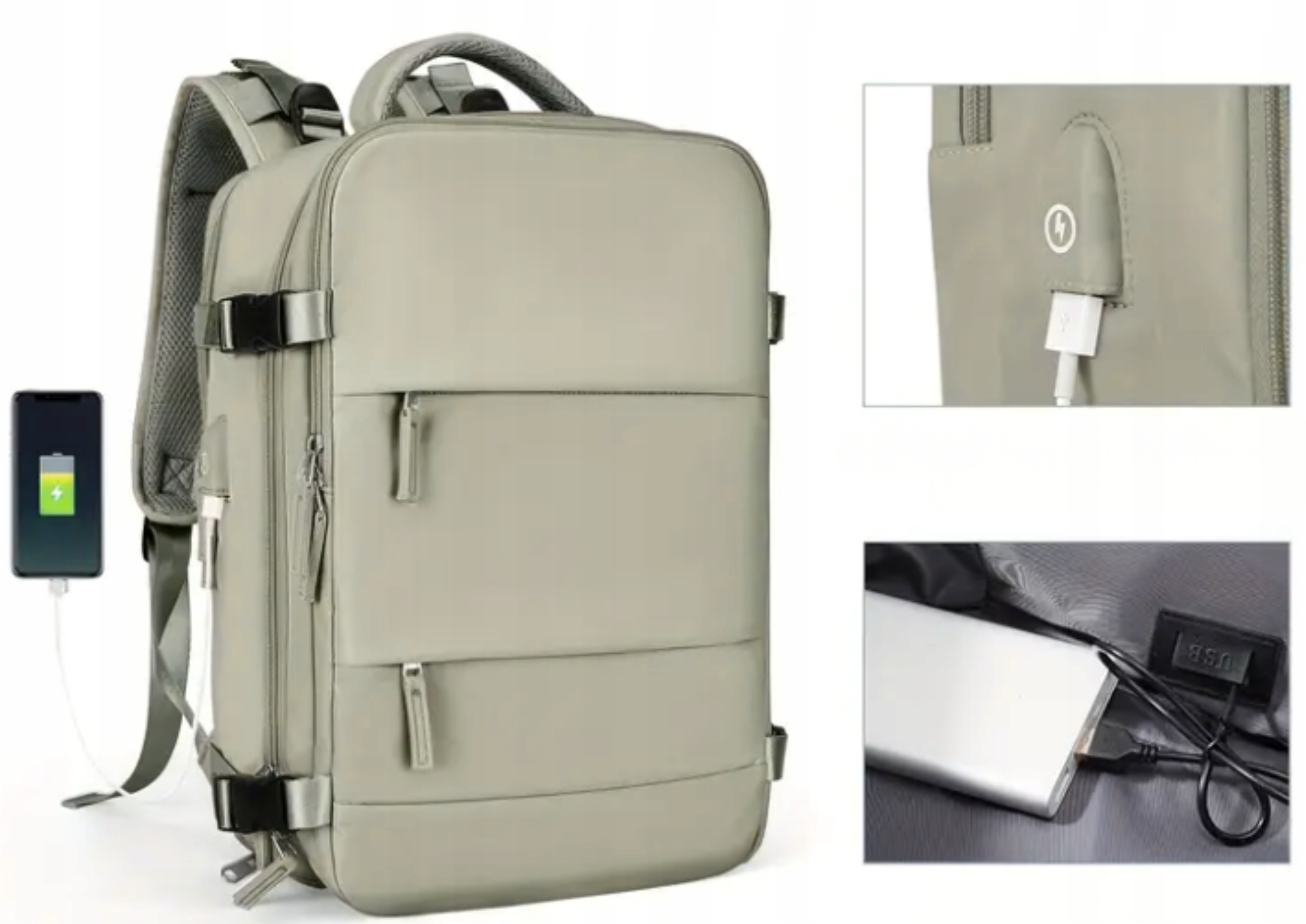 Зручний зовнішній кабельний вхід (USB) і внутрішній кабель для підключення Power Bank дозволяє легко заряджати мобільні пристрої, підключивши його до Power Bank (не входить в рюкзак). Тепер ви можете без проблем зарядити свій телефон або планшет по дорозі в аеропорт!