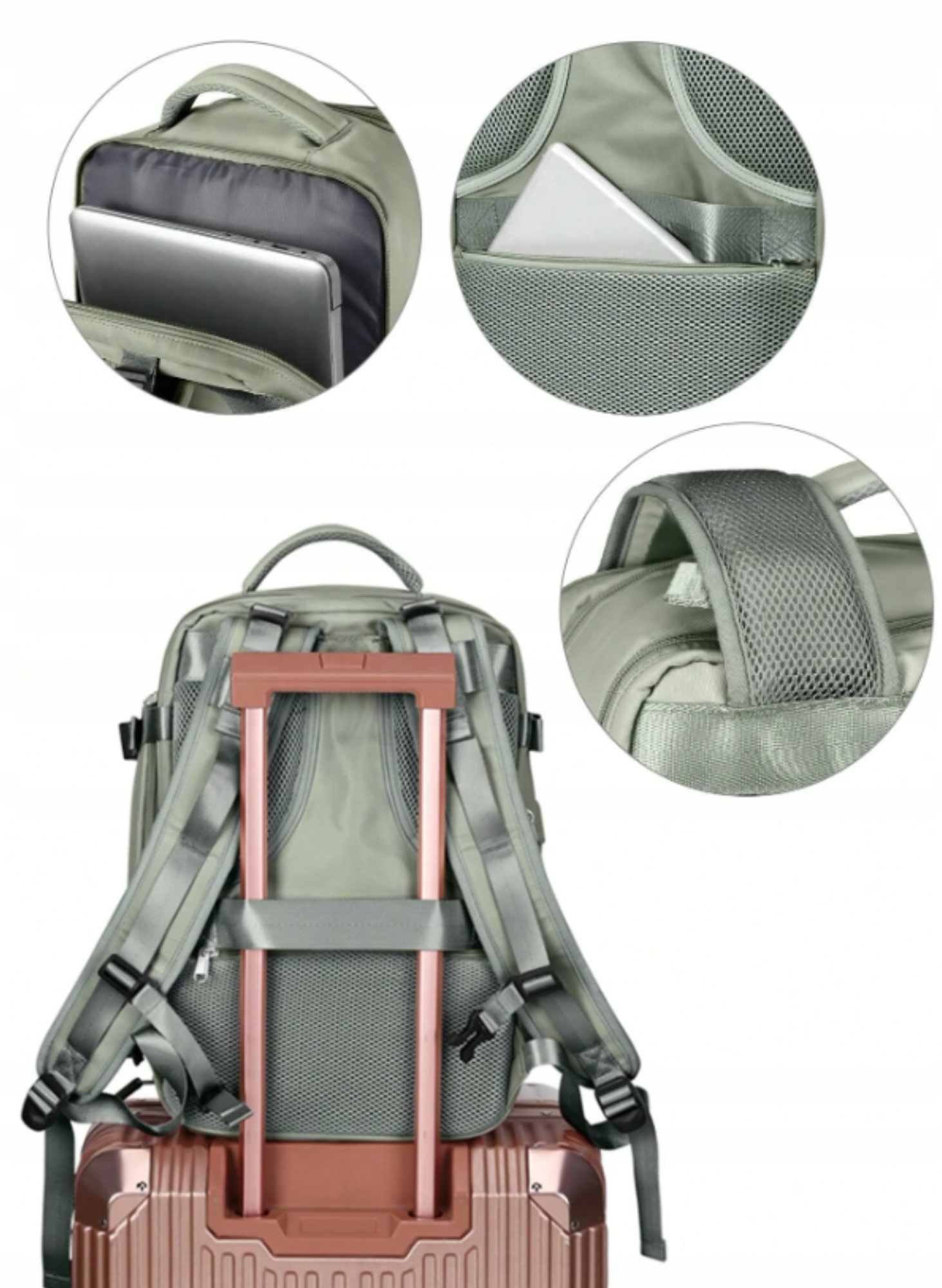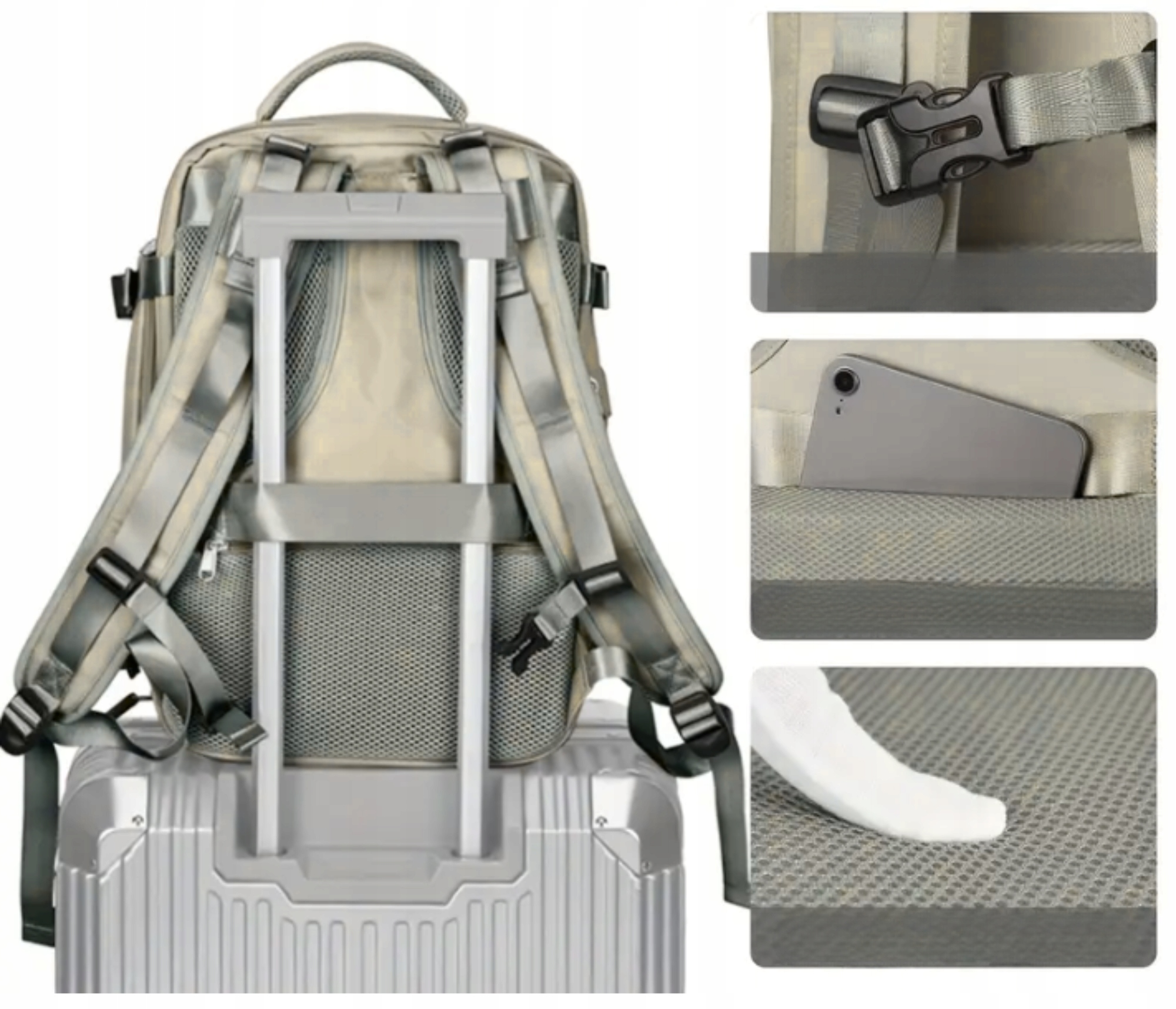 Цей багатофункціональний рюкзак можна використовувати в трьох різних варіантах способи: як класичний рюкзак, який можна носити за бокову ручку, як сумку, або прикріпити до ручки дорожньої валізи, що робить подорож ще легшою.