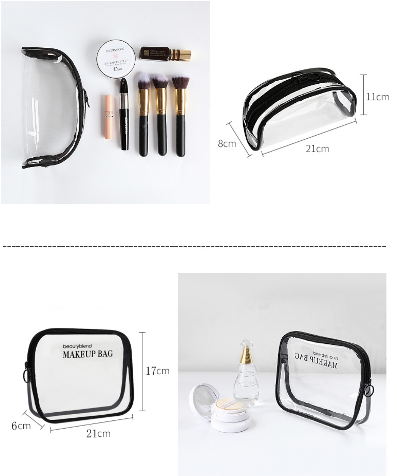 Завдяки косметичкам ви легко зможете підтримувати свою косметику в порядку. Прозорий матеріал, з якого вони виготовлені, дозволяє швидко знайти потрібний предмет, що пришвидшить реєстрацію в аеропорту.