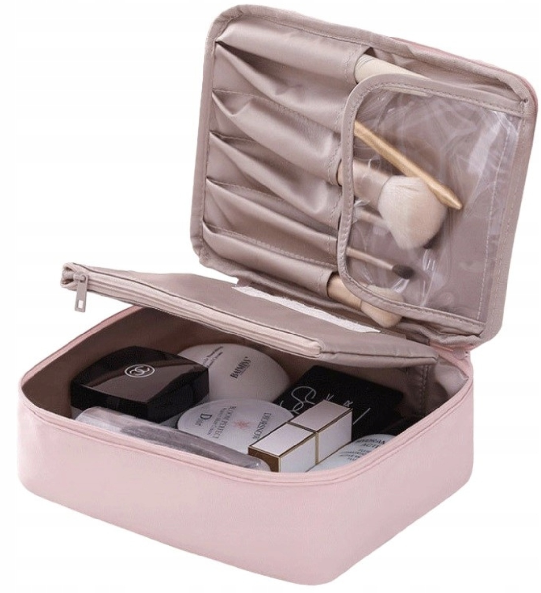 ⭐ Косметичка висувна, елегантний футляр, пудрово-рожевий, жіночий органайзер