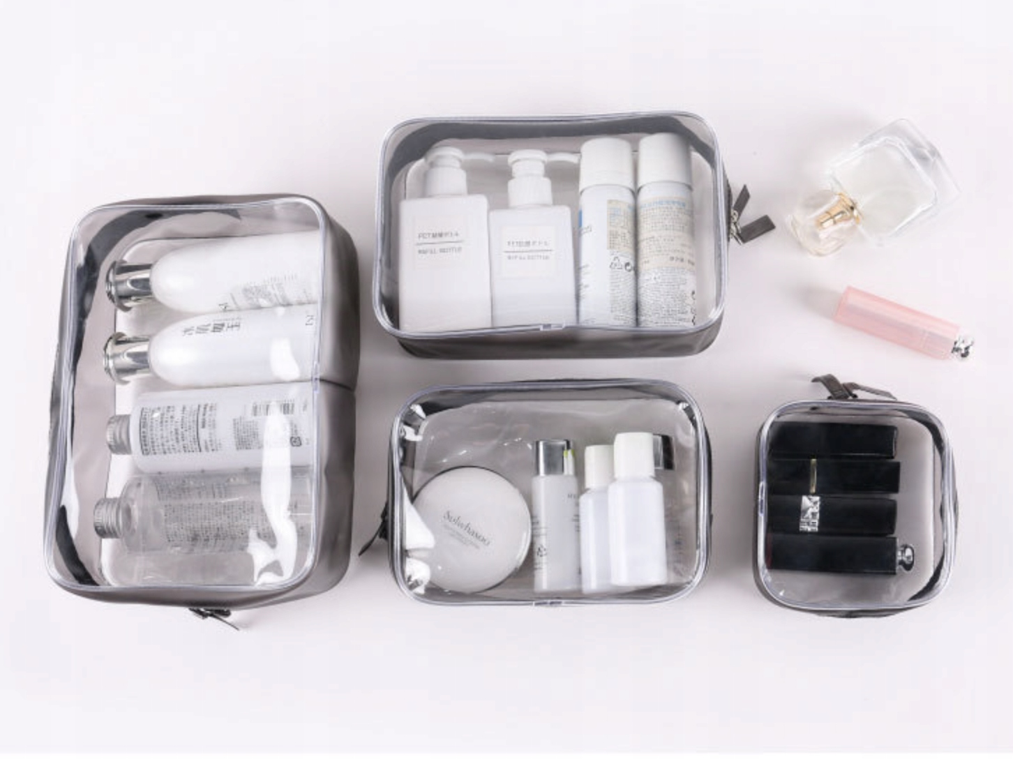 ДОРОЖНЯ КОСМЕТИЧКА ВМІСТНА, ПРОЗОРА, СТИЛЬНА НАБІР З 4 ШТ.