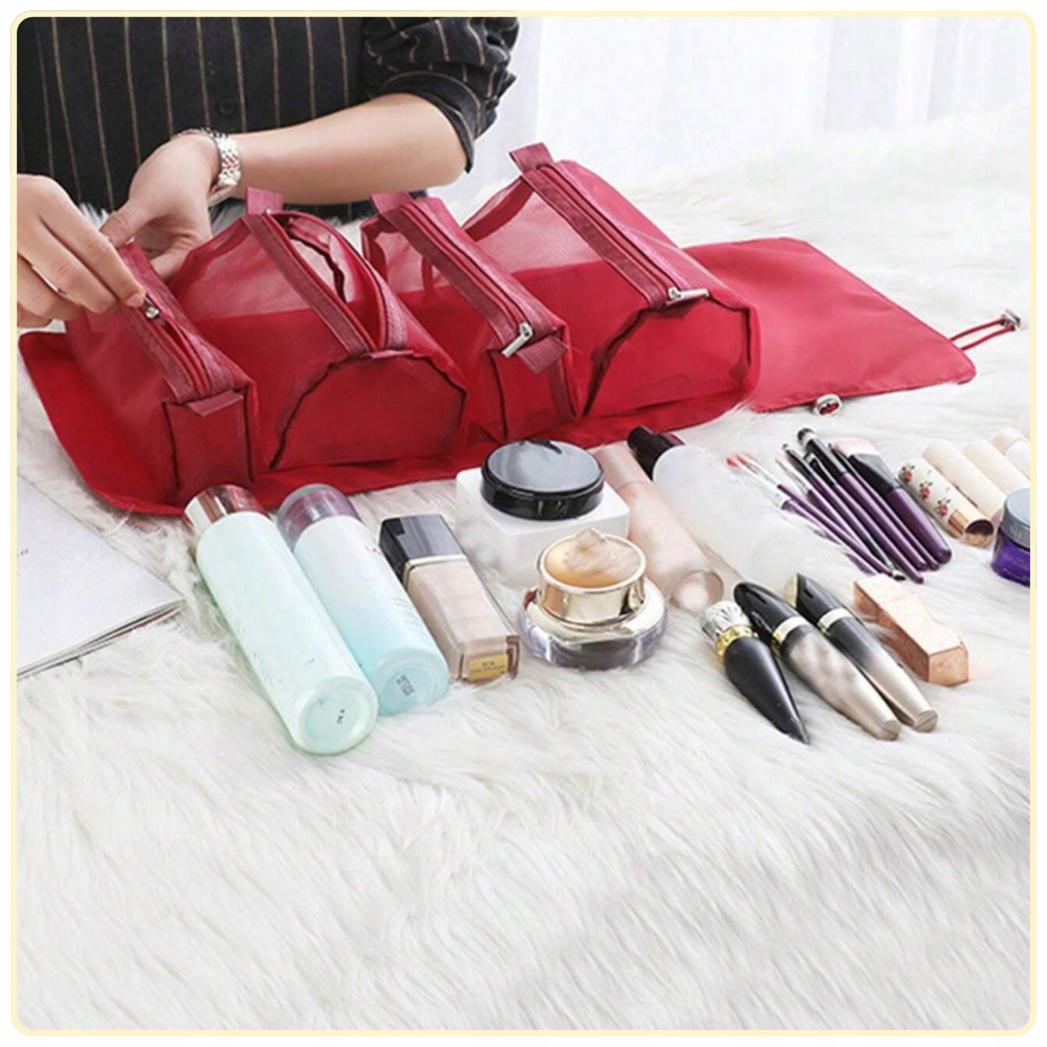 Завдяки чотирьом кишеням, які відстібаються за допомогою липучок, вам не потрібно брати всю косметичку. Ви можете візьміть із собою лише один або кілька контейнерів, які легко помістяться в маленьку сумочку.