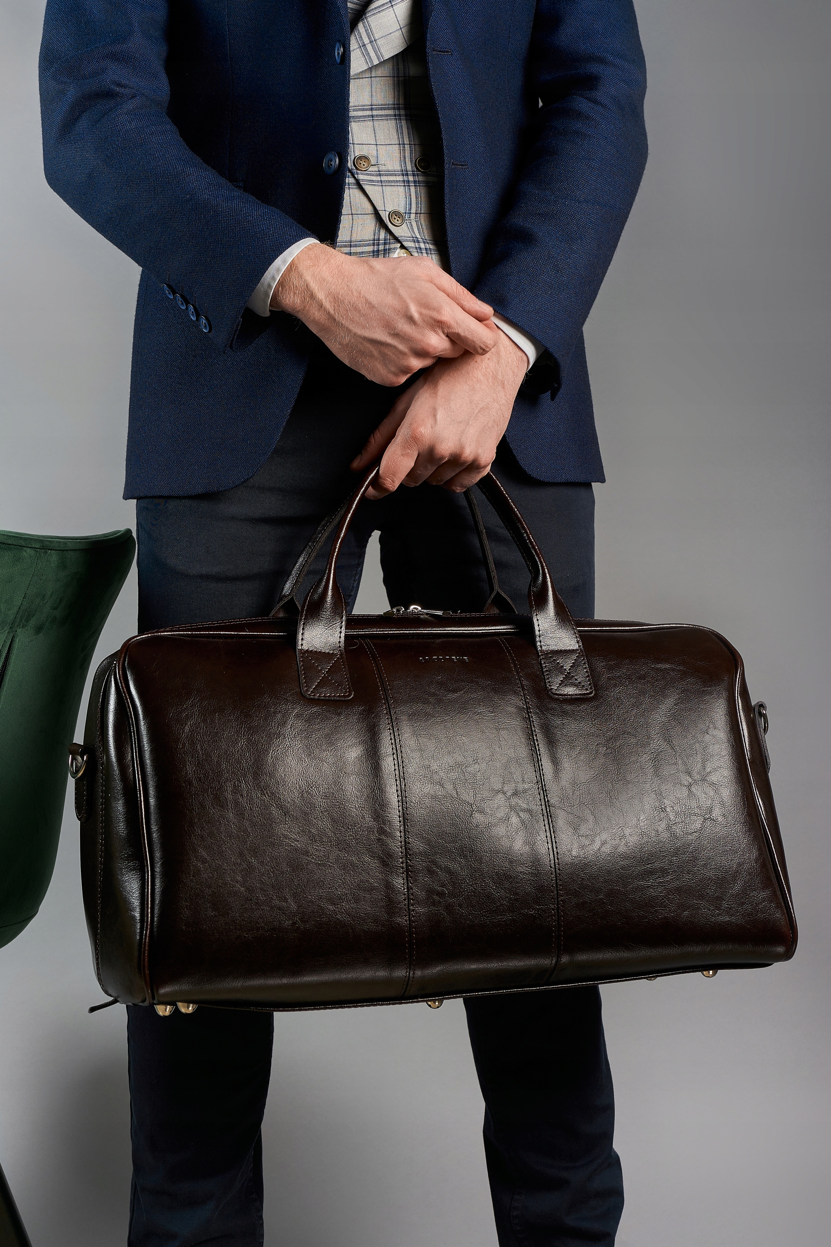Шкіряна дорожня сумка, елегантна сумка через плече та ручна сумка для ділових поїздок і відпустки Brødrene R10 Dark Brown Bag (5996-DARKBROWN)