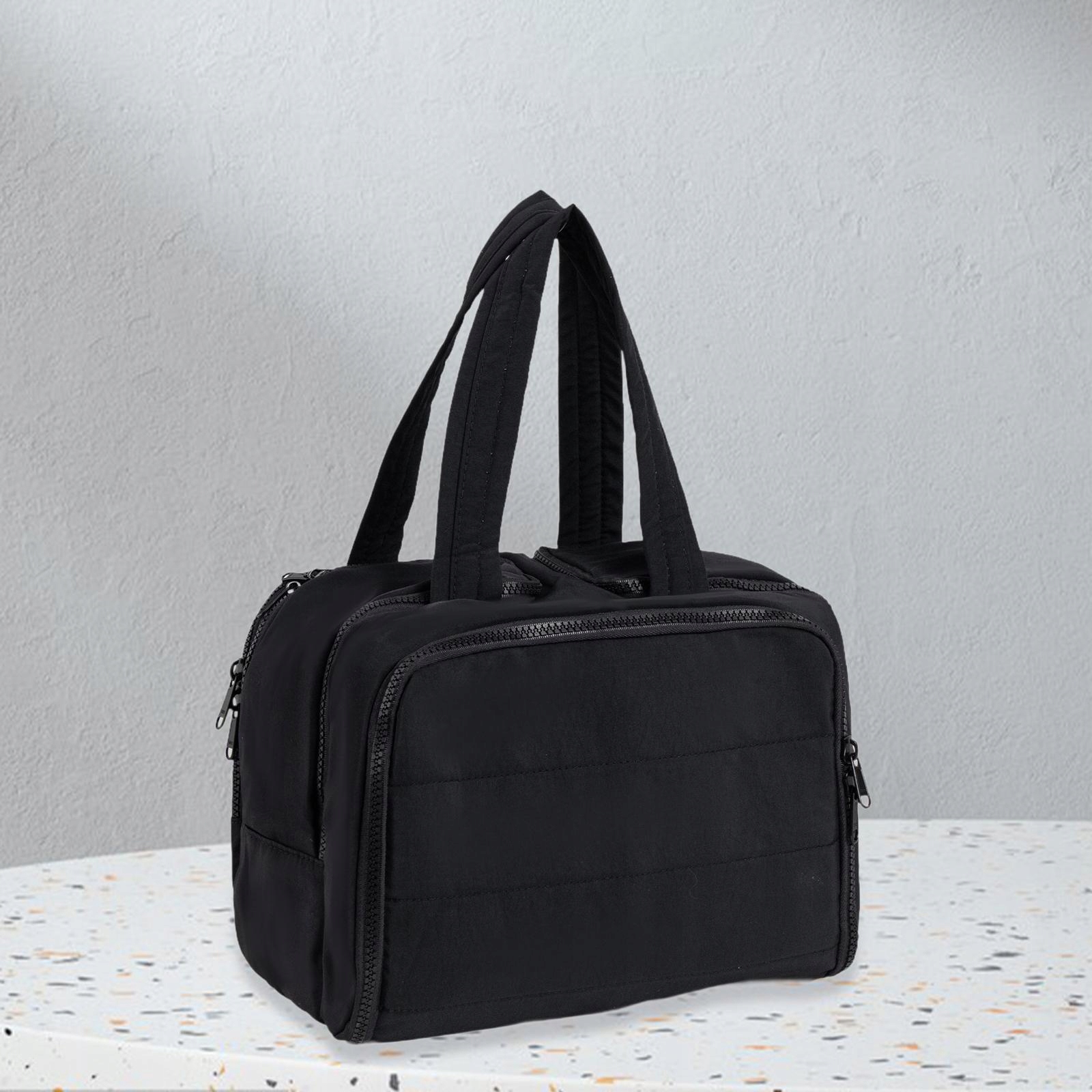 [Легкий доступ і вертикальне зберігання]: туалетна сумка повністю відкривається, не згортаючись, забезпечуючи легкий доступ до речей. Його двостороння, повністю відкрита конструкція дозволяє косметичним пляшечкам і туалетним приналежностям стояти вертикально, запобігаючи витоку під час транспортування