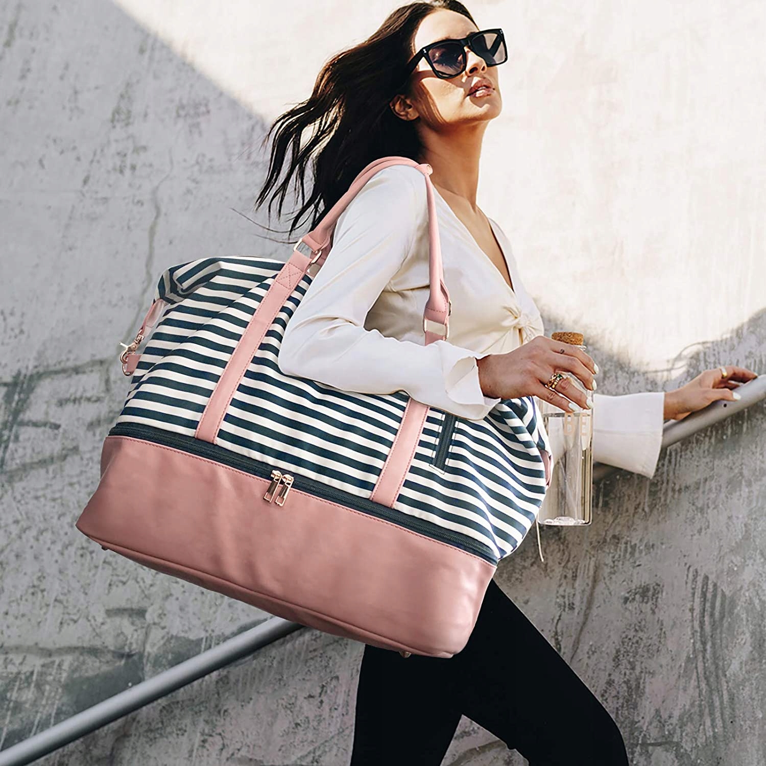 ДОРОЖНЯ СУМКА EVERVANZ WEEKEND STRIPED PINK