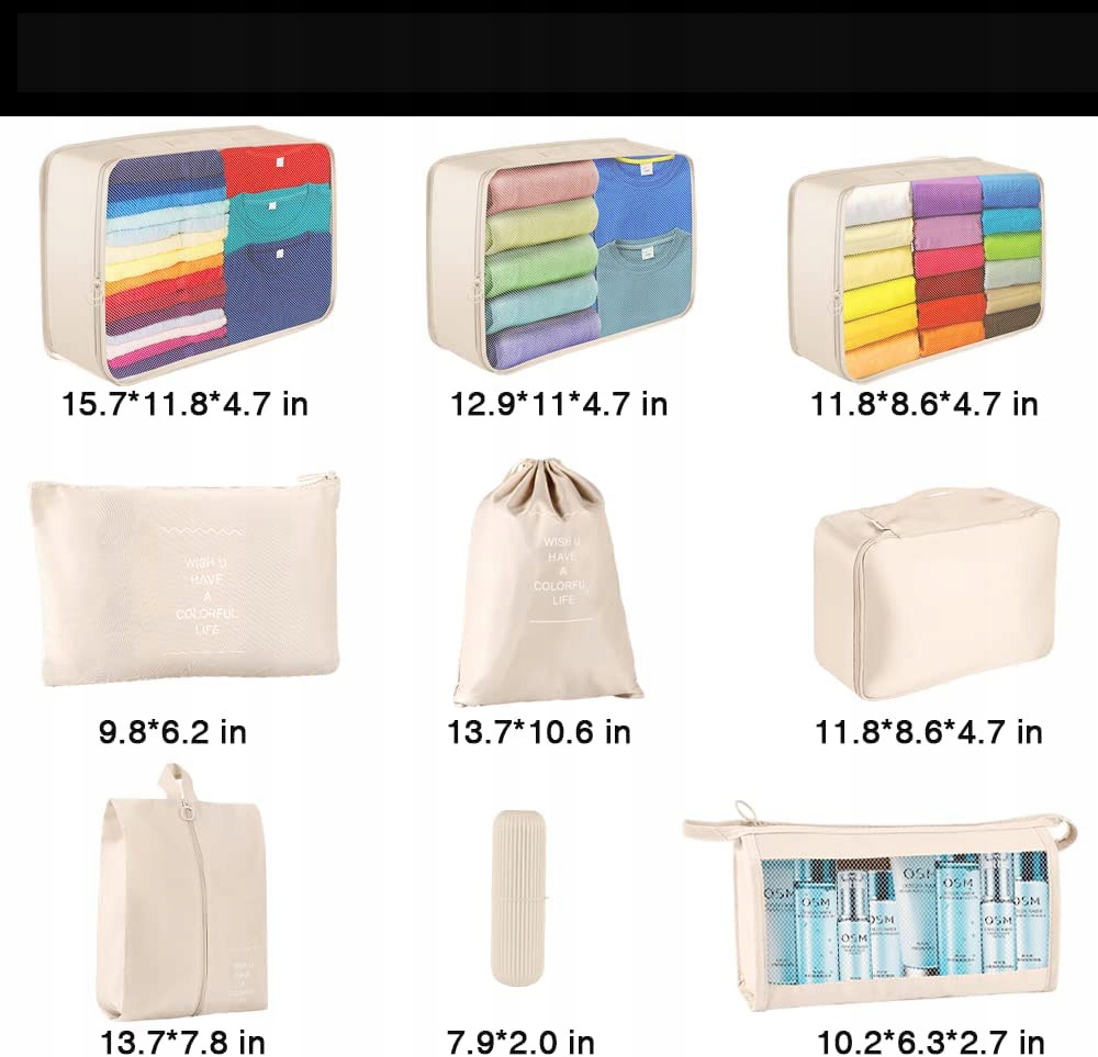 - Набори дорожніх сумок різних розмірів ідеально підходять для зберігання та сортування різних продуктів.