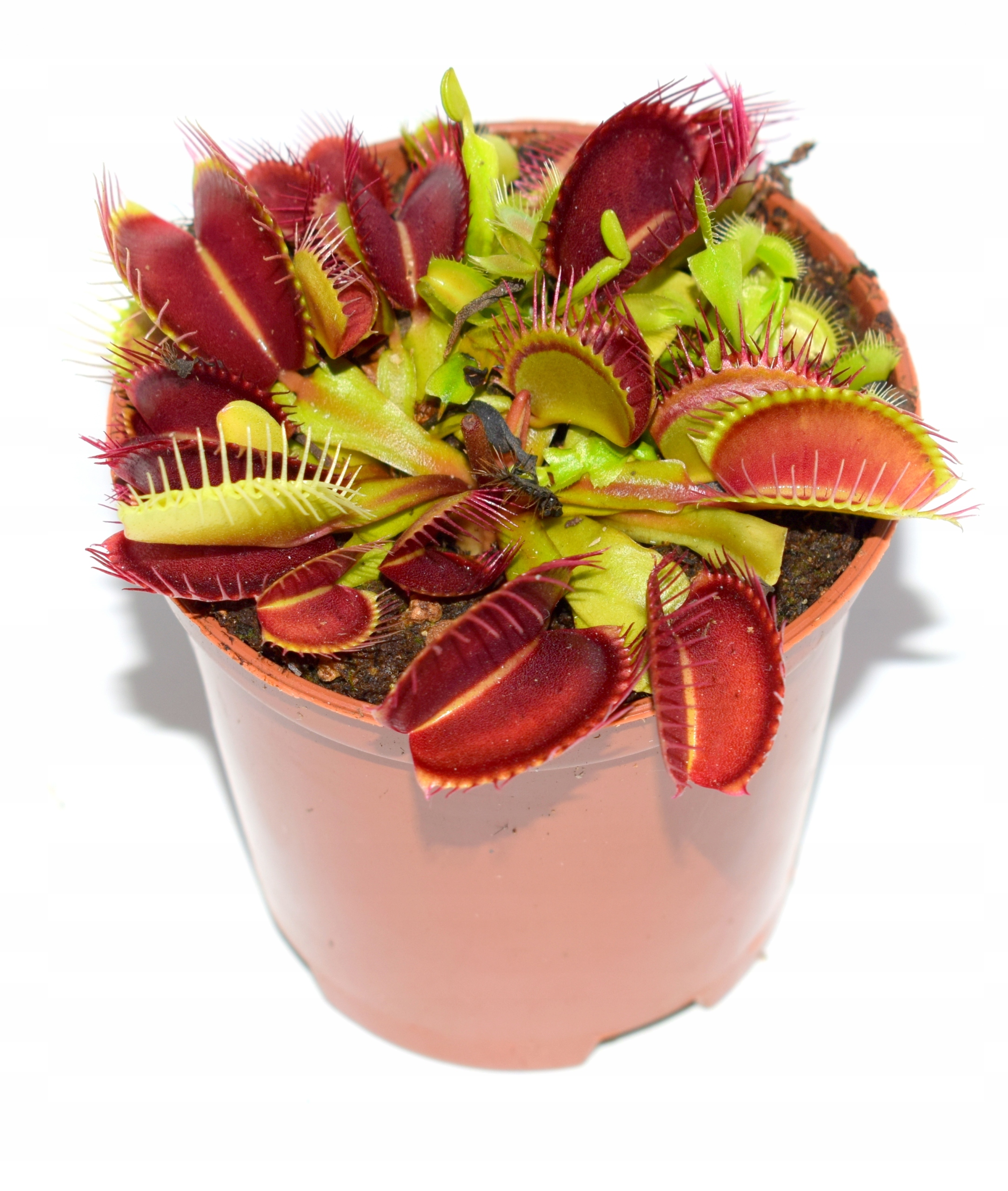 Рослини здорові, дуже добре вкорінені та забарвлені, як видно на фото . Продані мухоловки мають повністю розроблені пастки і дуже гарно ловлять комах. Рослини висаджені та доставлені в горщики діаметром 7 см.
