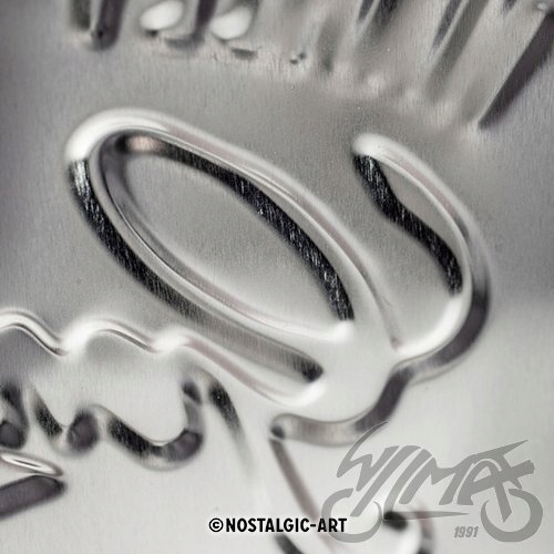 Вивіска виготовлена з товстого сталевого листа. Завдяки глибокому тисненню набуває жорсткості та неповторного зовнішнього вигляду. Написи та графічні елементи опуклі для створення тривимірного ефекту. Все завершується високоякісним відбитком, виконаним фарбами підвищеної стійкості.