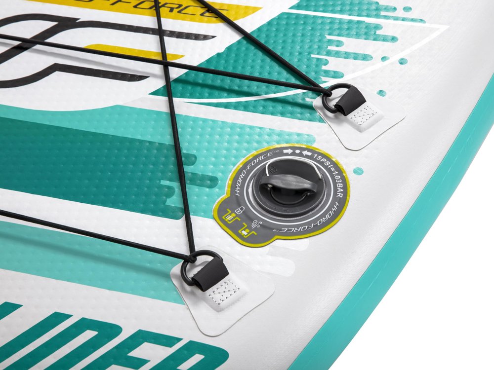 Надувна дошка Stand Up Aqua Glider від Bestway розміром 320 х 79 х 12 см - ідеальний спосіб активно провести вільний час біля води. Добре виготовлена дошка з нековзкою поверхнею, дуже добре профільована та гнучким повідцем для серфінгу, яка добре працюватиме на багатьох водоймах. Дошка дуже зручна у використанні, її легко накачати за допомогою ручного насоса. Еластичні шнури корисні під час транспортування, наприклад, ласт, маски чи додаткового багажу... Завдяки дуже високій плавучості він може легко підняти людину з максимальною масою тіла 110 кг (включно з багажем).
