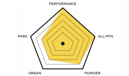 Дизайн ALPINE V1 PROFILE має середній розвал із плоским хвостом і зворотним вивалом на носі. Це забезпечує велику кількість поштовхів і стабільність на твердому снігу, а також збільшує підйомну силу і посадкову силу, розширюючи можливості райдера в глибокому снігу. Розвал довший у хвості, що забезпечує додаткову потужність на підходах чи підйомах, або для більших райдерів, яким потрібна ширша дошка.
