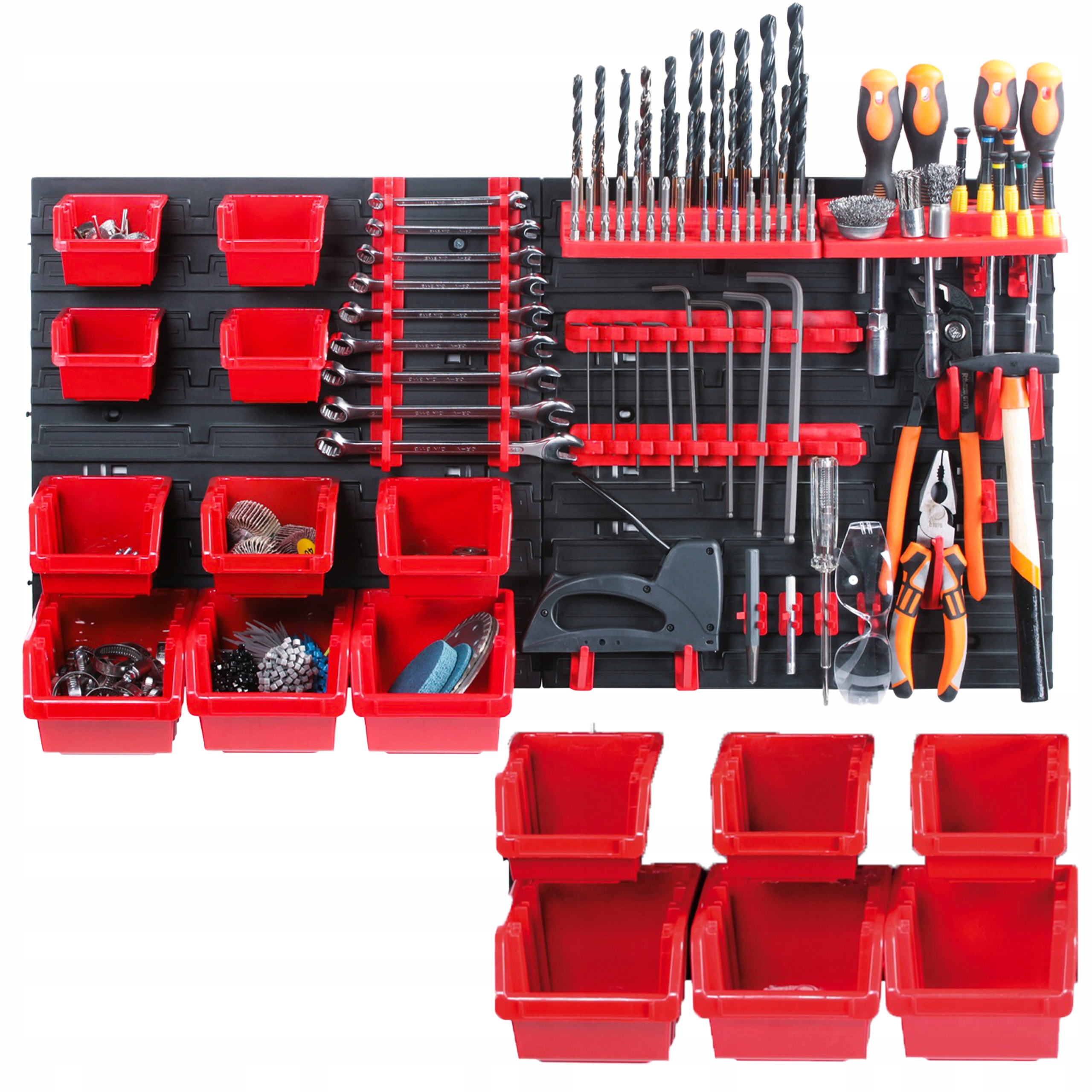 Надзвичайно практичний набір, оснащений з чашками для дрібниць у 2-х розмірах дозволить зберегти прозорість і порядокв інструментах і аксесуарах для зберігання. Набір має отвори для кріплення, що забезпечує швидку та легку установку на стіні. Обов’язковий атрибут для кожного любителя DIY!