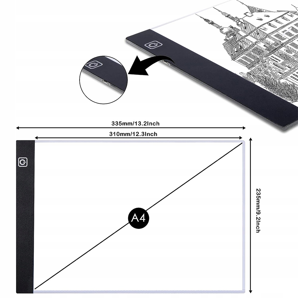 ДОШКА ДЛЯ КРАСУВАННЯ A4 USB LED СТОЛ ДЛЯ КОПІЮВАННЯ З 3-КРУТИМИ РЕГУЛЯТОРАМИ ЗАТЕМНЕННЯ