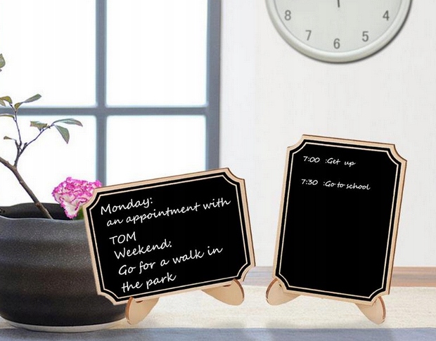 Вивіска стильна і практична водночас. На ньому можна писати крейдою, яку потім легко стирати вологою ганчіркою. Використовувати можна не тільки вдома, а й на весіллях, зустрічах, вечірках, балах тощо.